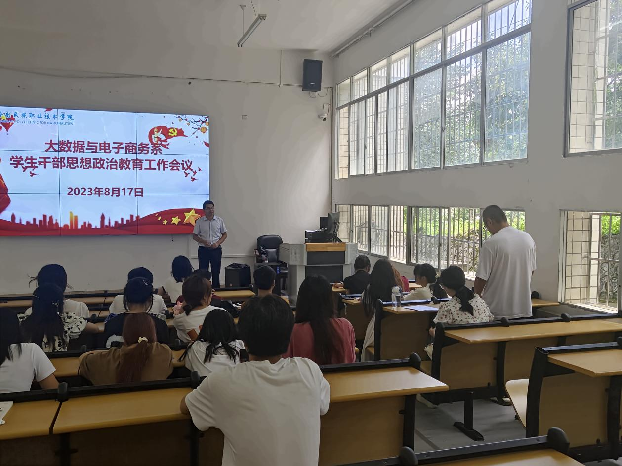 为了营造新学期良好学习生活氛围,加强学风建设,更好的开展学生管理工作,培养优秀学生干部,2023年8月17日我系召开了学生干部思想政治教育工作会议,会议由第七届学生会主席刘甜主持,系党总支书记韦递平、系学生管理负责人杨春红、系团总支负责人白礼姣、系辅导员申学燕等出席了会议。