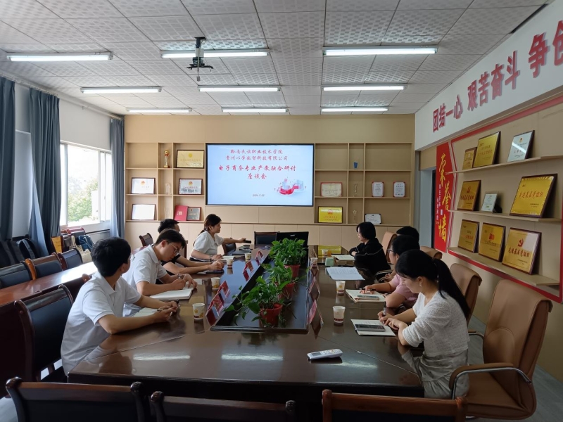 2024年9月23日,贵州以学教育科技有限公司与大数据与电子商务系在黔南民族职业技术学院召开校企合作座谈,贵州以学教育科技有限公司副总经理越荣、财经事业部组长王玉、校企合作经理刘程骞、厦门鹿课教育科技有限公司西南片区负责人尹昊、大数据与电子商务系党总支书记韦递平、党总支副书记李然、电子商务专业负责人吴翊、廖梓燕共同出席座谈会。