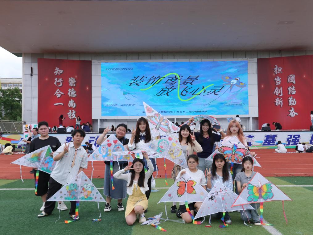 5 月 20 日 ,由大数据与电子商务系二级心理健康辅导站承办的 2025 年 “装饰鸢景,放飞心灵” 第一届风筝节在南区足球场圆满落下帷幕。此次活动紧扣 “5・25” 大学生心理健康文化节主题,吸引全院共 400 余名学生参与,为学生搭建了释放压力、展示创意的实践平台。