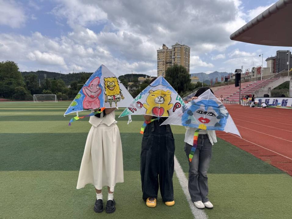 第二环节为“绘制希望”。同学们充分发挥想象力和创造力,用画笔和颜料在风筝上描绘心中的风景。部分同学书写 “祝你无忧,愿你长乐” 等温馨话语传递美好祝愿;有的同学把烦恼写在纸条上,通过放飞风筝实现情绪纾解;还有同学以团队合作的形式,用手掌印图案记录珍贵友谊。无论是绚丽的色彩、灵动的图案,还是充满力量的文字,每一笔都是同学们情感的倾诉,每一幅作品都是独特的自我表达。