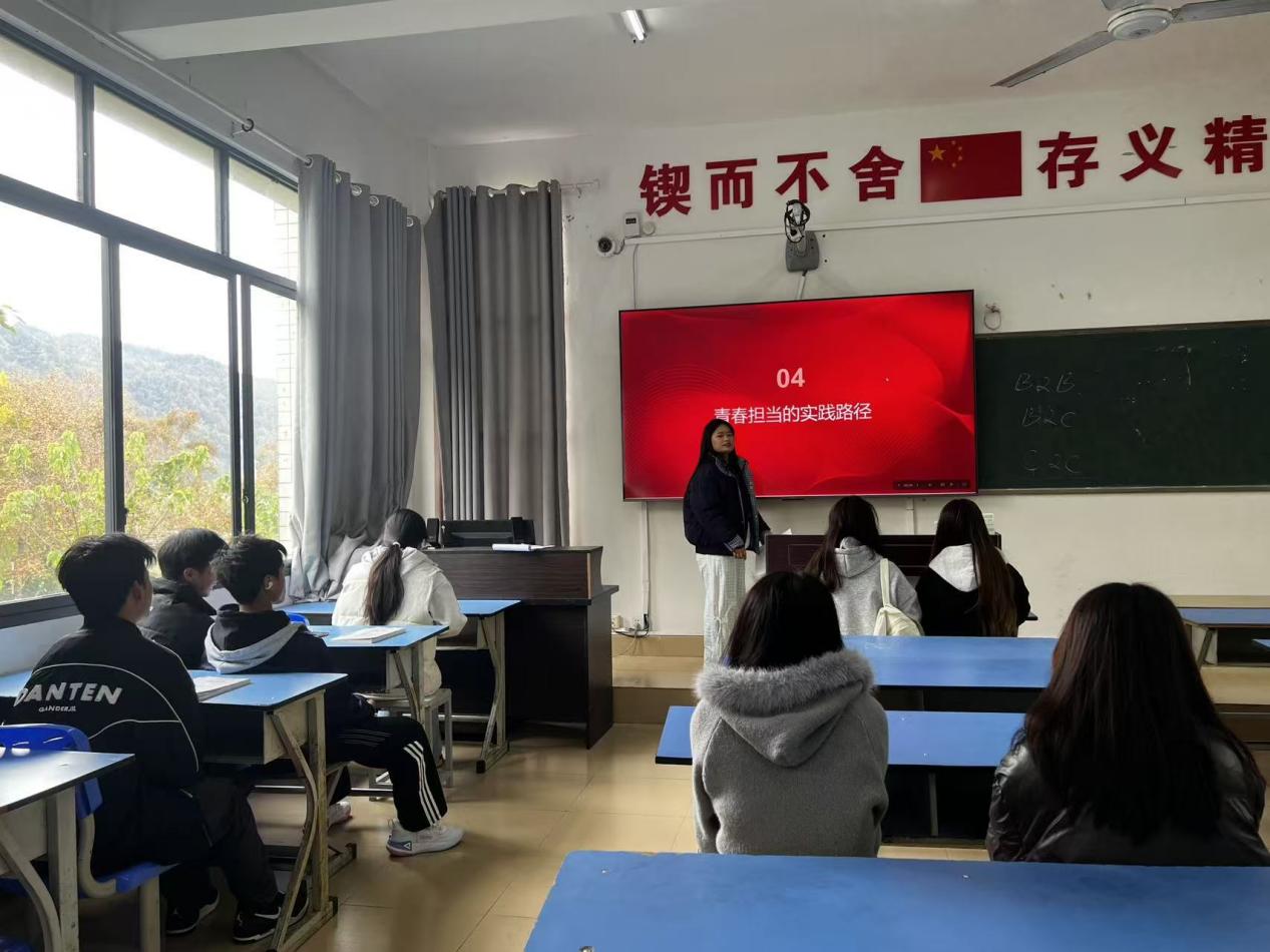 2025年11月15日,我系团总支组织开展“学习二十届四中全会精神,青春为中国式现代化挺膺担当”主题团组织生活会。团支书通过PPT系统解读全会精神,结合典型案例阐释对青年成长的指引意义;团员们围绕“青年如何助力中国式现代化”,结合专业与实践经历热议交流,凝聚“立足小事、活用专业”的共识,明确深化理论学习、深耕专业实践、拓展志愿场景的后续行动方向。