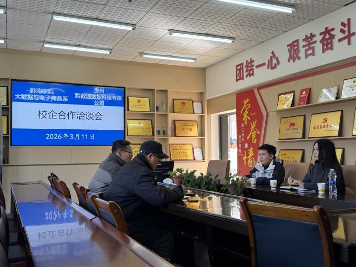 为深入贯彻职业教育产教融合、校企协同育人相关政策要求,切实提升专业人才培养质量,拓宽学生实习实践路径与就业渠道,2026年3月11日,我系与贵州黔数通数据科技有限公司举行校企合作洽谈会,对在校学生开展“个人IP全域商业项目”专题讲座,系党总支书记张军杰、相关专业教师参加此次活动。