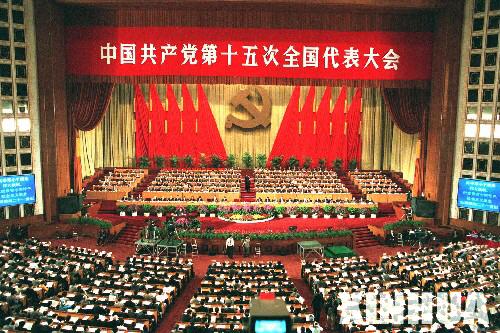 这次大会是在我国改革开放和社会主义现代化建设发展的关键时刻召开的,是在世纪之交,承前启后,继往开来,保证全党继承邓小平同志遗志,坚定不移地沿着十一届三中全会以来正确路线胜利前进的大会。五年前,党的十四大郑重地把邓小平建设有中国特色社会主义的理论写在了中国共产党的旗帜上,并向全世界庄严宣告:我国经济体制改革的目标是建立社会主义市场经济体制。五年来,以江泽民同志为核心的党中央全面贯彻党的基本理论和基本路线,认真实施党的十四大作出的各项重要决策,贯彻“抓住机遇,深化改革,扩大开放,促进发展,保持稳定”的基本方针,使我们党和国家经受住了新的考验,把改革开放和社会主义现代化建设推进到一个新的历史阶段,各个领域都取得了举世瞩目的巨大成就。社会主义市场经济体制的框架加速构建,国民经济持续、快速、健康发展,社会生产力、综合国力、人民生活水平又上了一个新台阶。党的建设、廉政建设、民主法制建设和社会主义精神文明建设大大加强。文化、科技、教育事业取得新的成绩。军队建设有了新的进展,国防更加巩固。外交工作成绩卓著,我国的国际地位日益提高。香港顺利回归,祖国统一大业迈出了历史性的一步。正是在建设有中国特色社会主义的伟大事业欣欣向荣,展现出更加光明前景的时刻,中国共产党召开了党的第十五次全国代表大会。