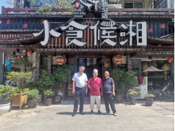 都匀剑江半岛彭厨餐饮店,领导与企业交流; 与学生合影