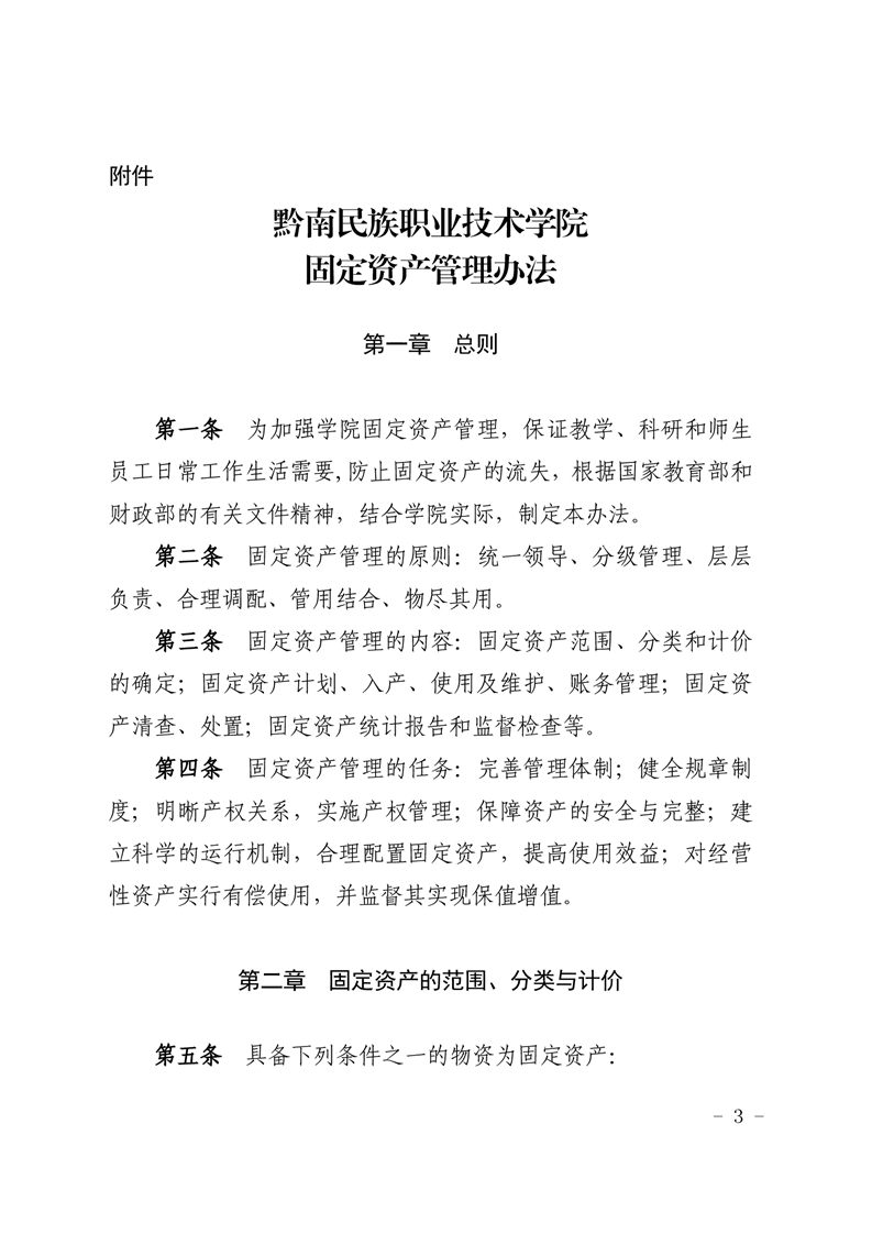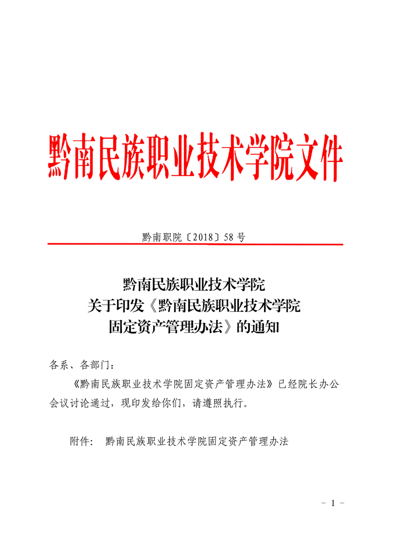 黔南民族职业技术学院关于印发《黔南民族职业技术学院固定资产管理办法》的通知