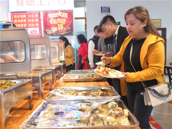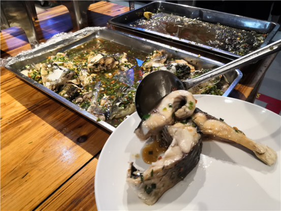 在校园食堂内的餐桌上摆着一盘盘美味的鱼肉,学生们吃得津津有味。“没有想到学校会有这样的活动,鱼肉很嫩,味道好极了。”学生们窃窃私语地说着。