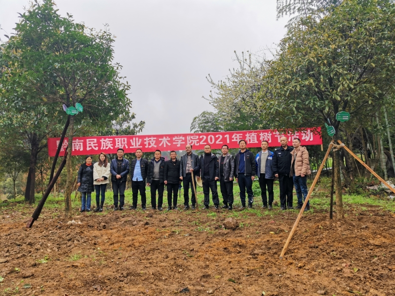2021年3月12日上午,在植树节来临之际,我院干部职工和部分学生代表在学院桃园开展“黔南民族职业技术学院2021年植树节”活动。院长刘荣鹏,党委副书记韦永革,纪委书记胡成林,副院长王焱、钟少兰参加了活动,后勤处全体职工参加植树活动。