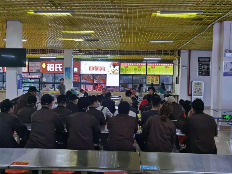 4月21日晚上8点,后勤处组织新食堂从业人员在感恩苑一楼召开新食堂发展动员会议,后勤处处长李林龙、处长助理张世举出席会议,膳食科、新食堂所有从业人员参会。
