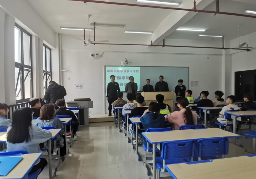 4月26日下午14:00点,后勤处在管理系307教室组织召开“顺丰班”开班仪式,副院长王焱、后勤处处长李林龙、教务处副处长杨均、大数据系主任贡玉军参加仪式。