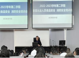 为作好新学期开学前的准备,确保师生用餐安全,同时根据州、市教育局及市场监管局对食堂、超市从业人员的工作要求,2023年2月16日上午,后勤处邀请都匀市市场监管局工作人员对学院食堂、超市所有从业人员进行食品安全、规范操作、紫外线灯消杀、保养及保卫处进行消防理论讲解和实操演练培训,同时在培训会上后勤处田驰处长对食堂食材来源、食品加工、饭菜质量、消防演练等工作作明确要求,并强调培训不是规定动作、走过场,要做到安全第一、服务至上,要通过培训熟练掌握食品安全规范和消防安全操作。培训中,大家踊跃提问,实操演练中人人动手。通过实操演练,广大从业人员消防技能得到了提升,增强了安全防范意识,为学院“双高”建设和高质量发展提供了强有力的安全保障。