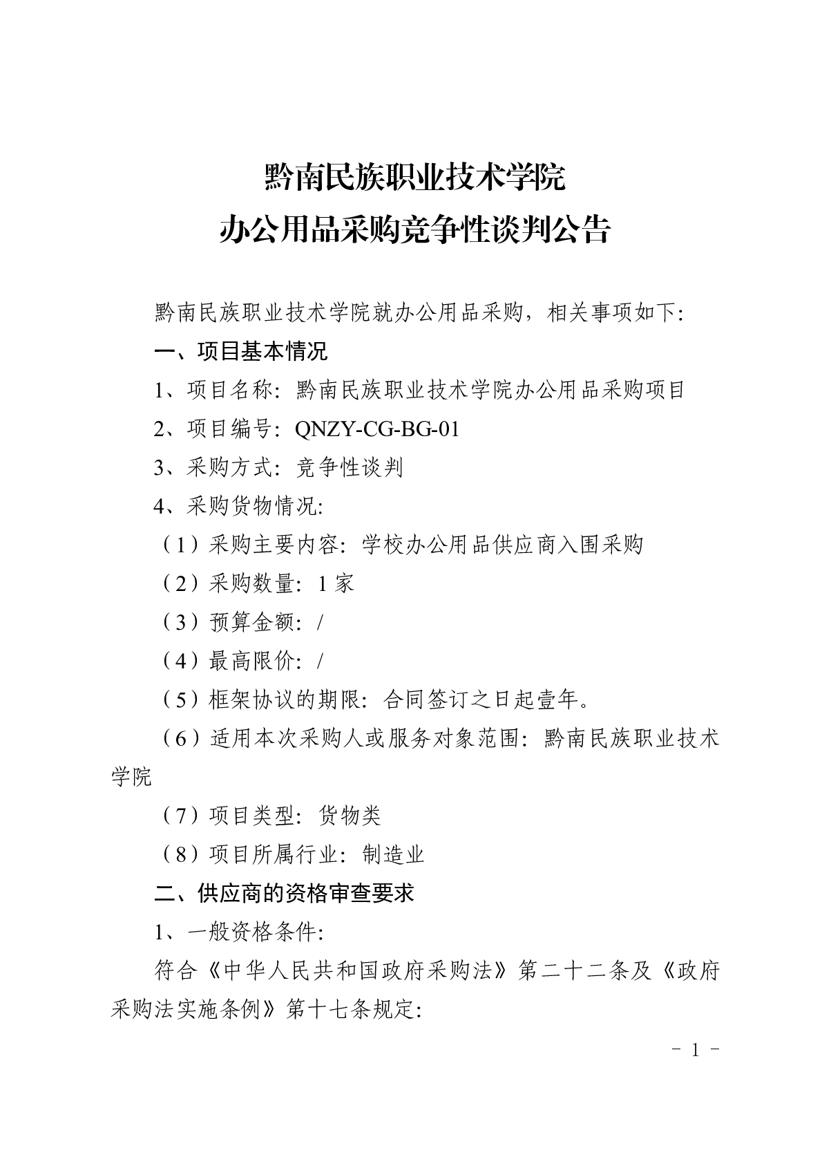 黔南民族职业技术学院办公用品采购竞争性谈判公告.pdf
