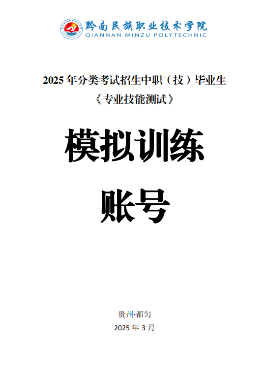 附件1:《黔南职院2025年分类考试招生测试模拟训练账号》