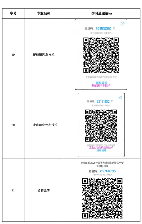 我院已建立“中职(中技)职业技能测试模拟训练课程”,请“中职(中技)考生用手机下载“超星学习通”,用志愿填报系统中预留的手机号码绑定用户,选择你所填报的第一志愿专业进入课程模拟训练,各专业的超星二维码见附件1。
