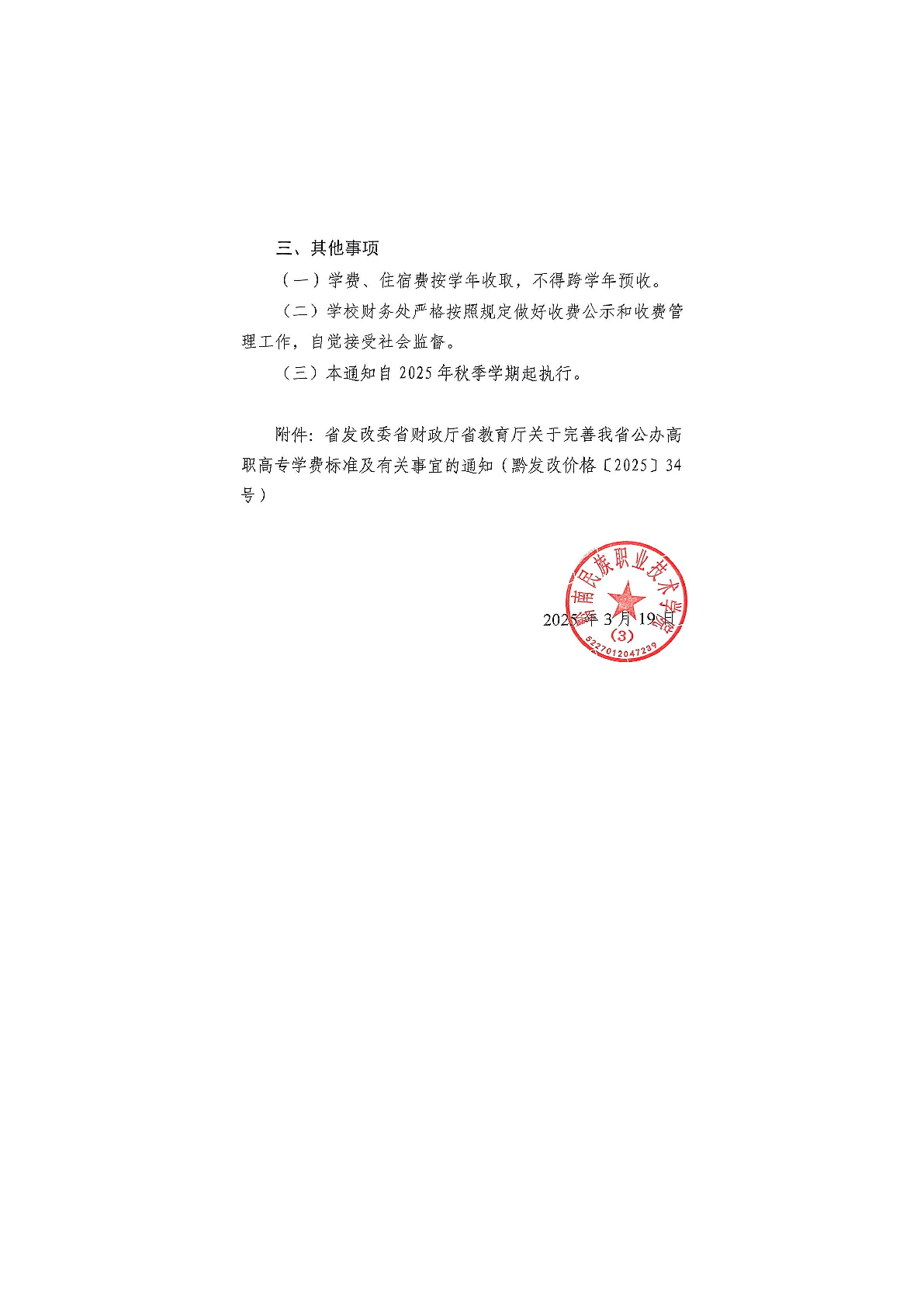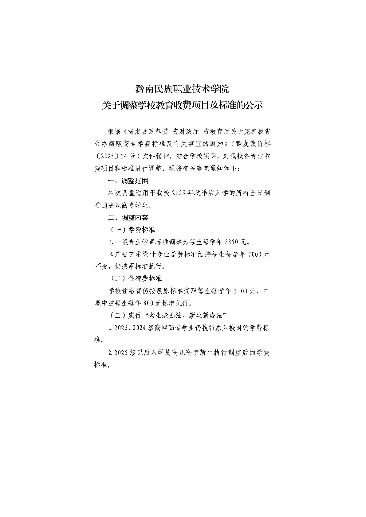 黔南民族职业技术学院关于调整学校教育收费项目及标准的公示