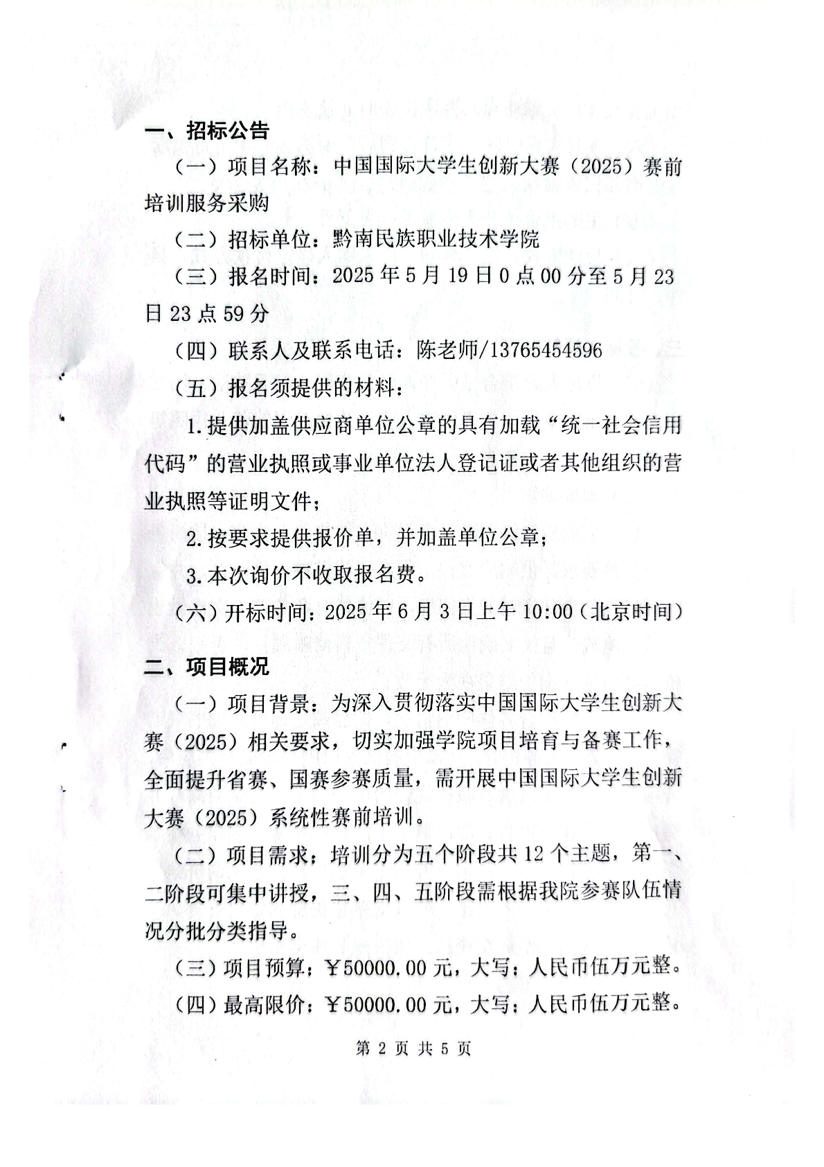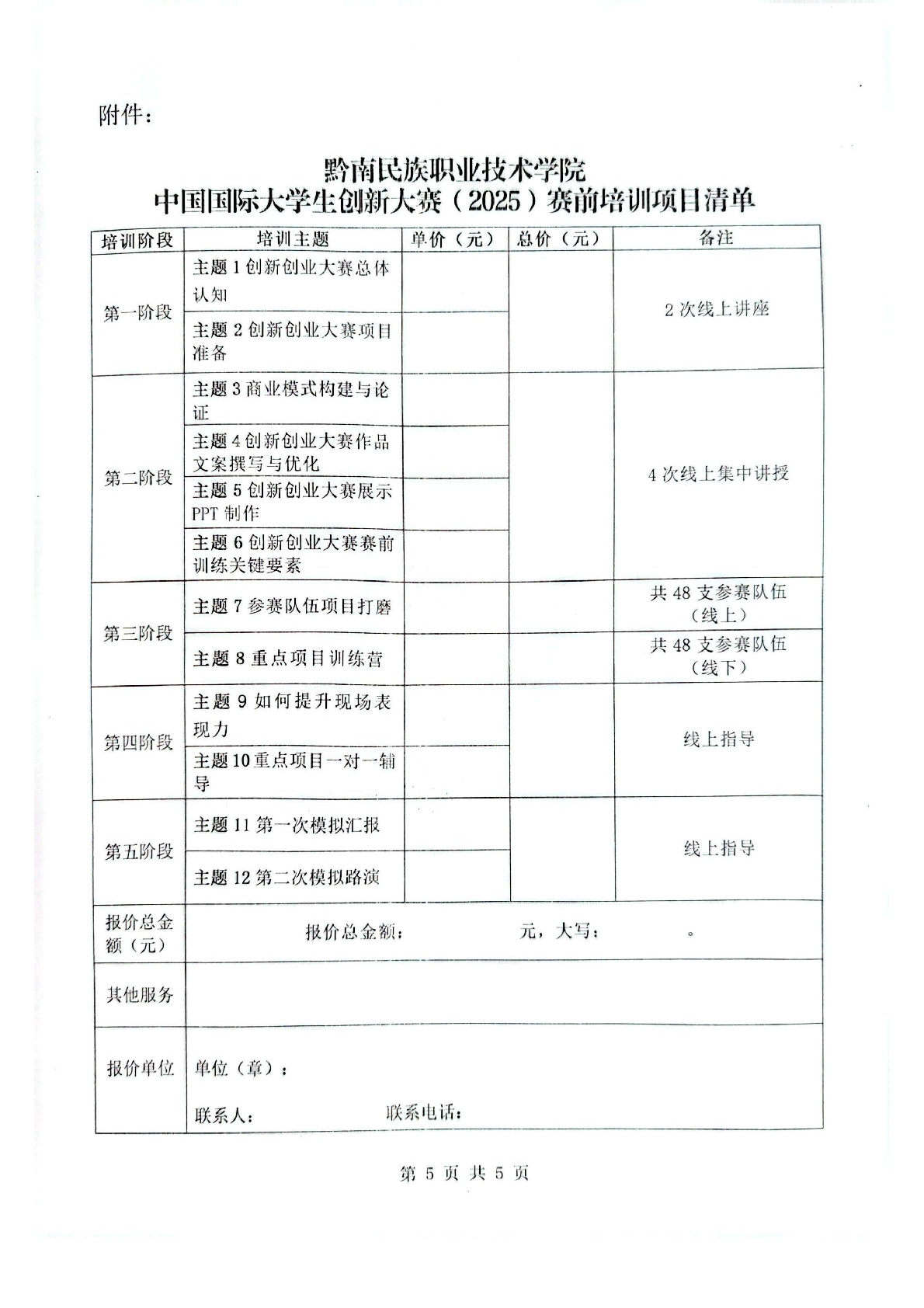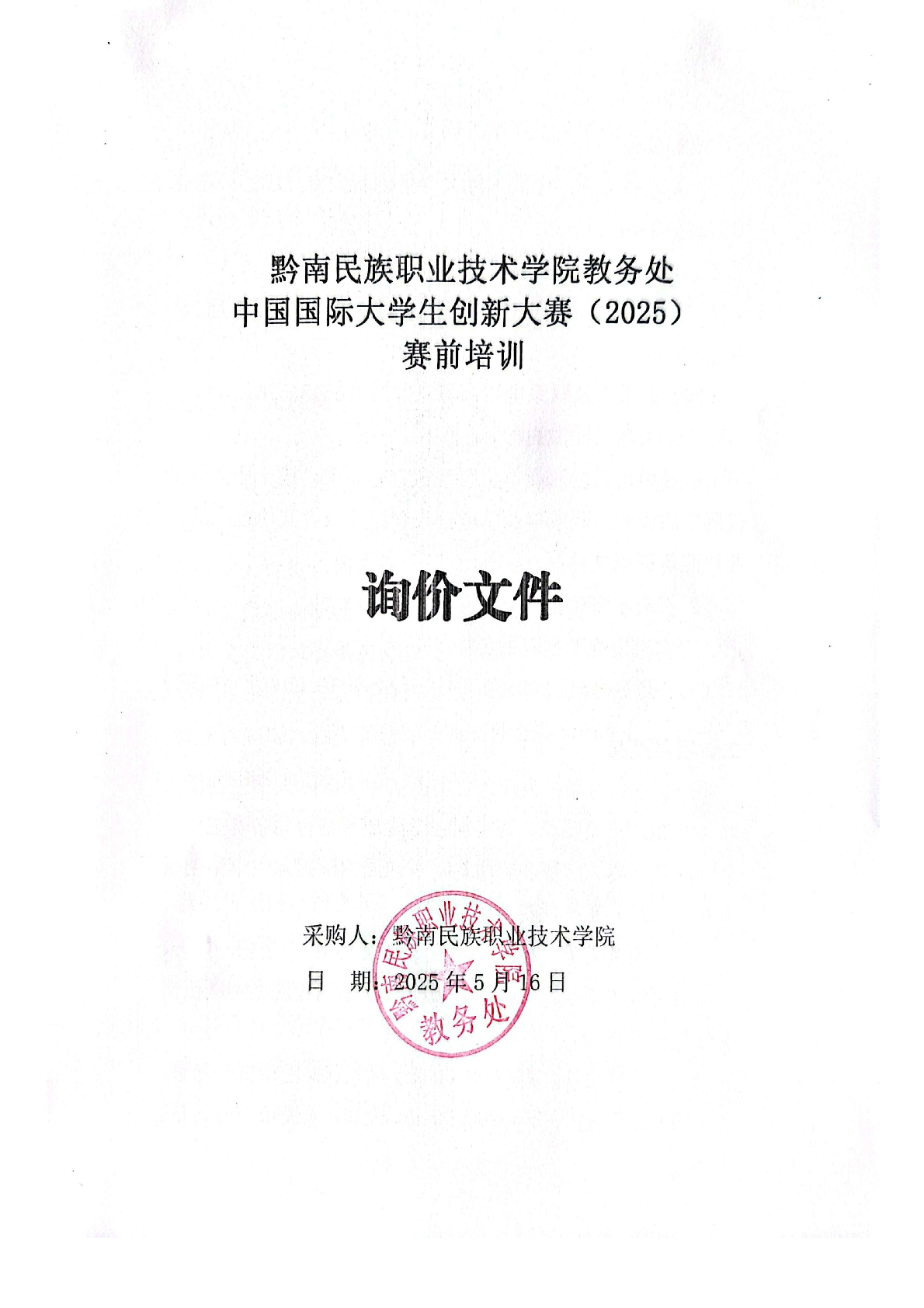 中国国际大学生创新大赛(2025)赛前培训询价文件