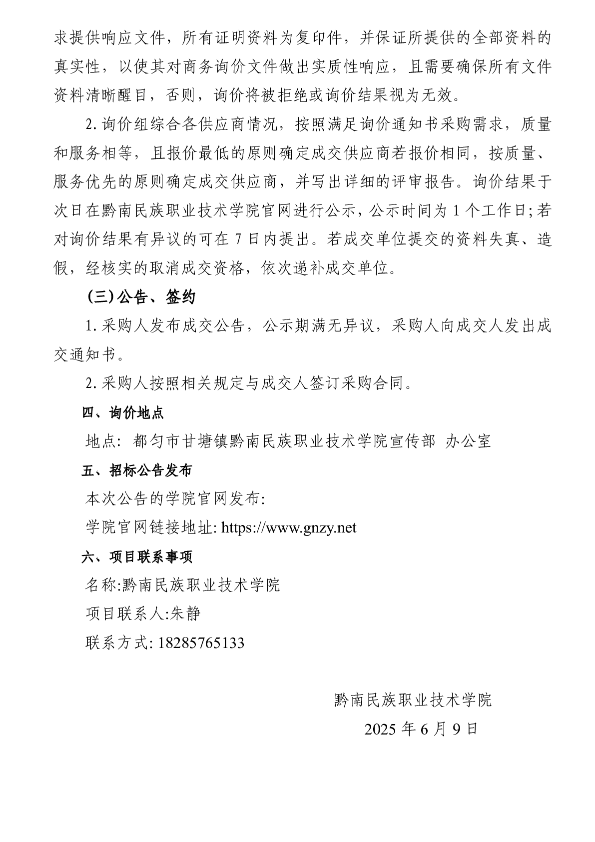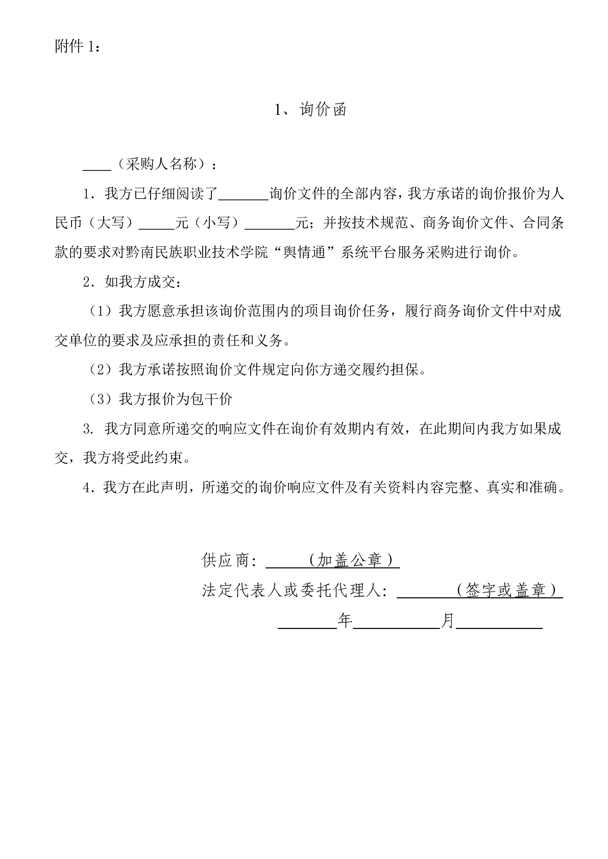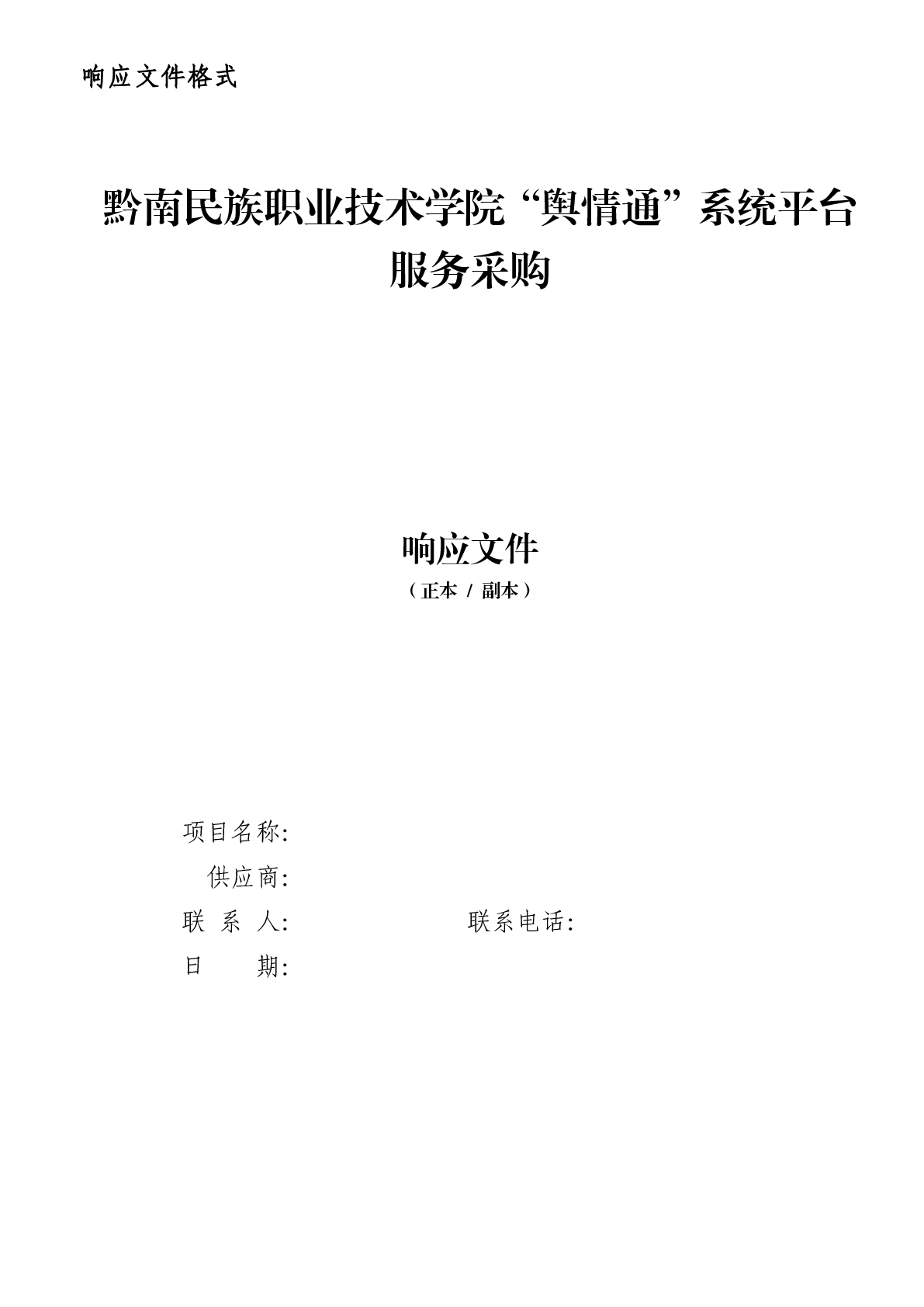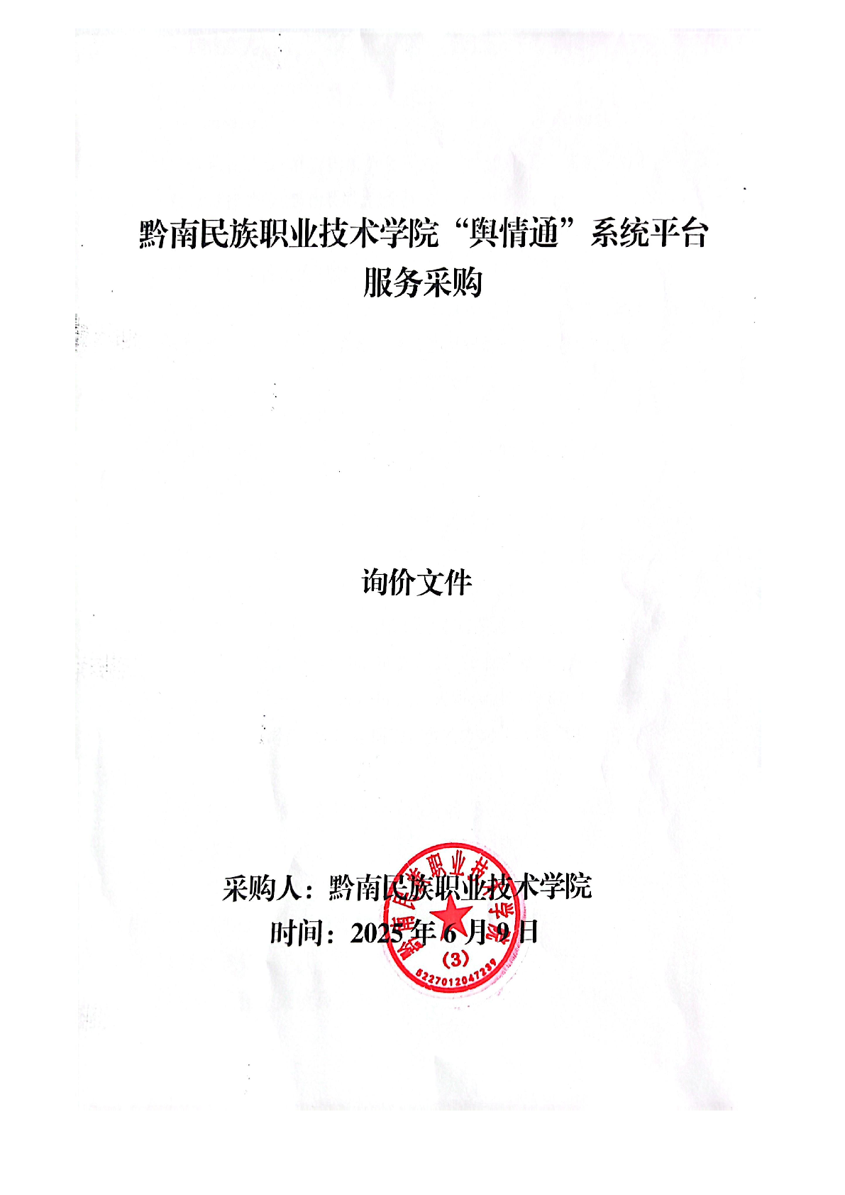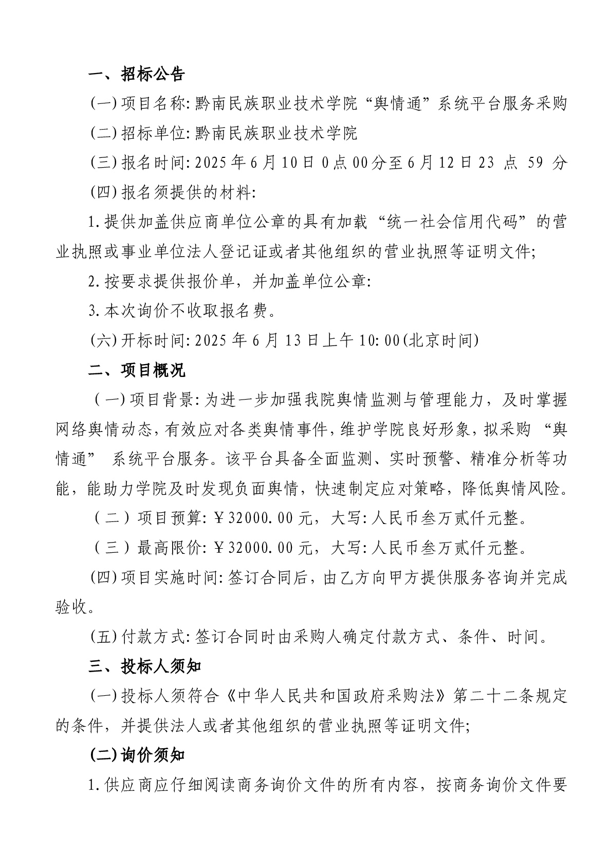 黔南民族职业技术学院“舆情通”系统平台服务采购询价文件