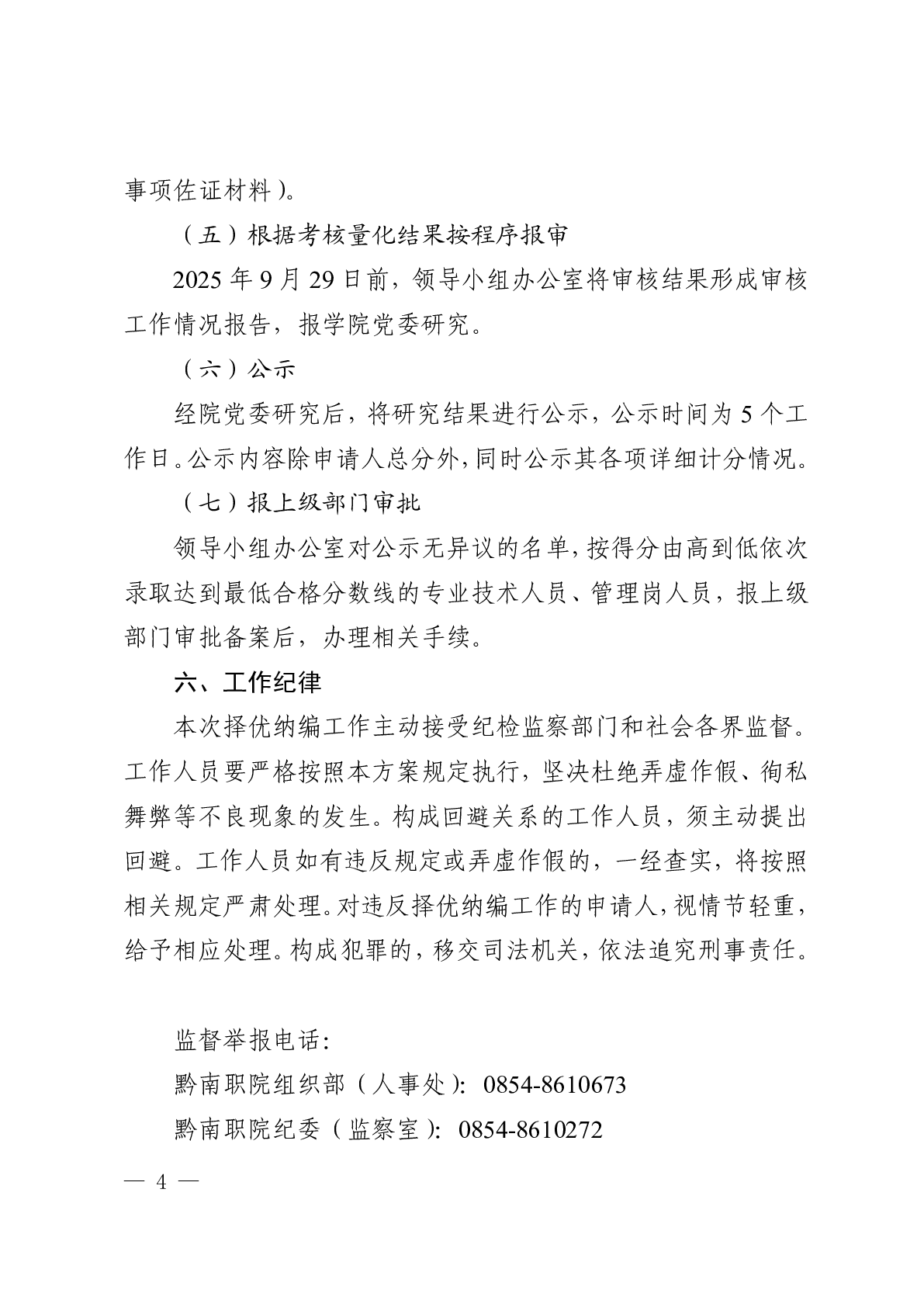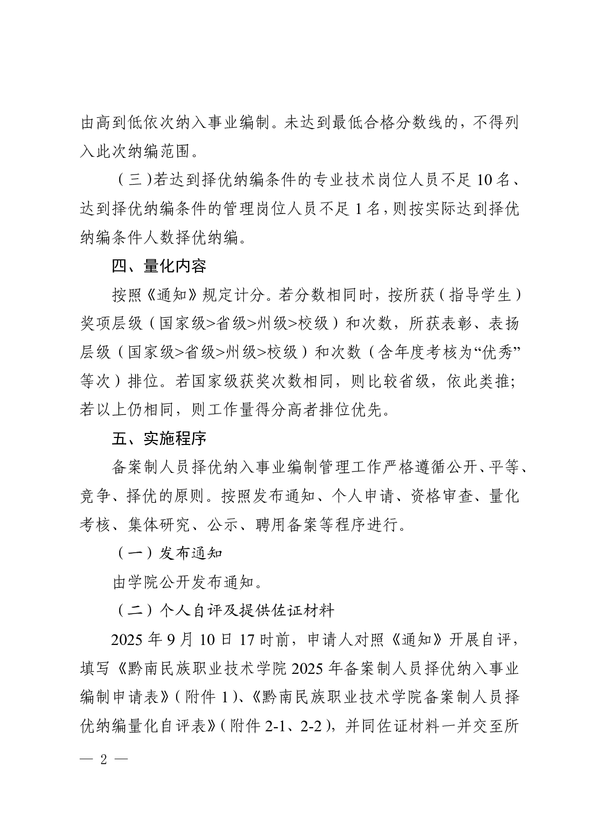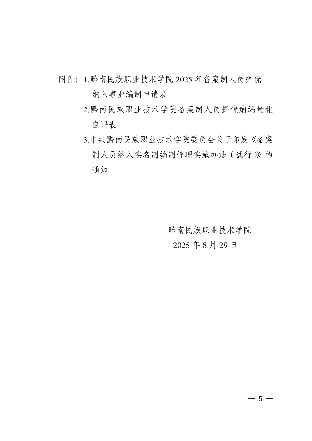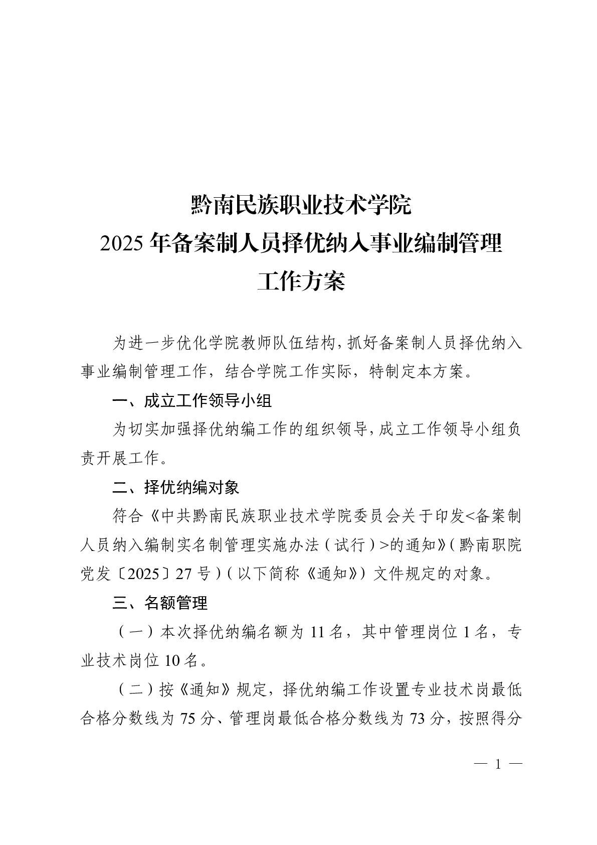 黔南民族职业技术学院2025年备案制人员择优纳入事业编制管理工作方案