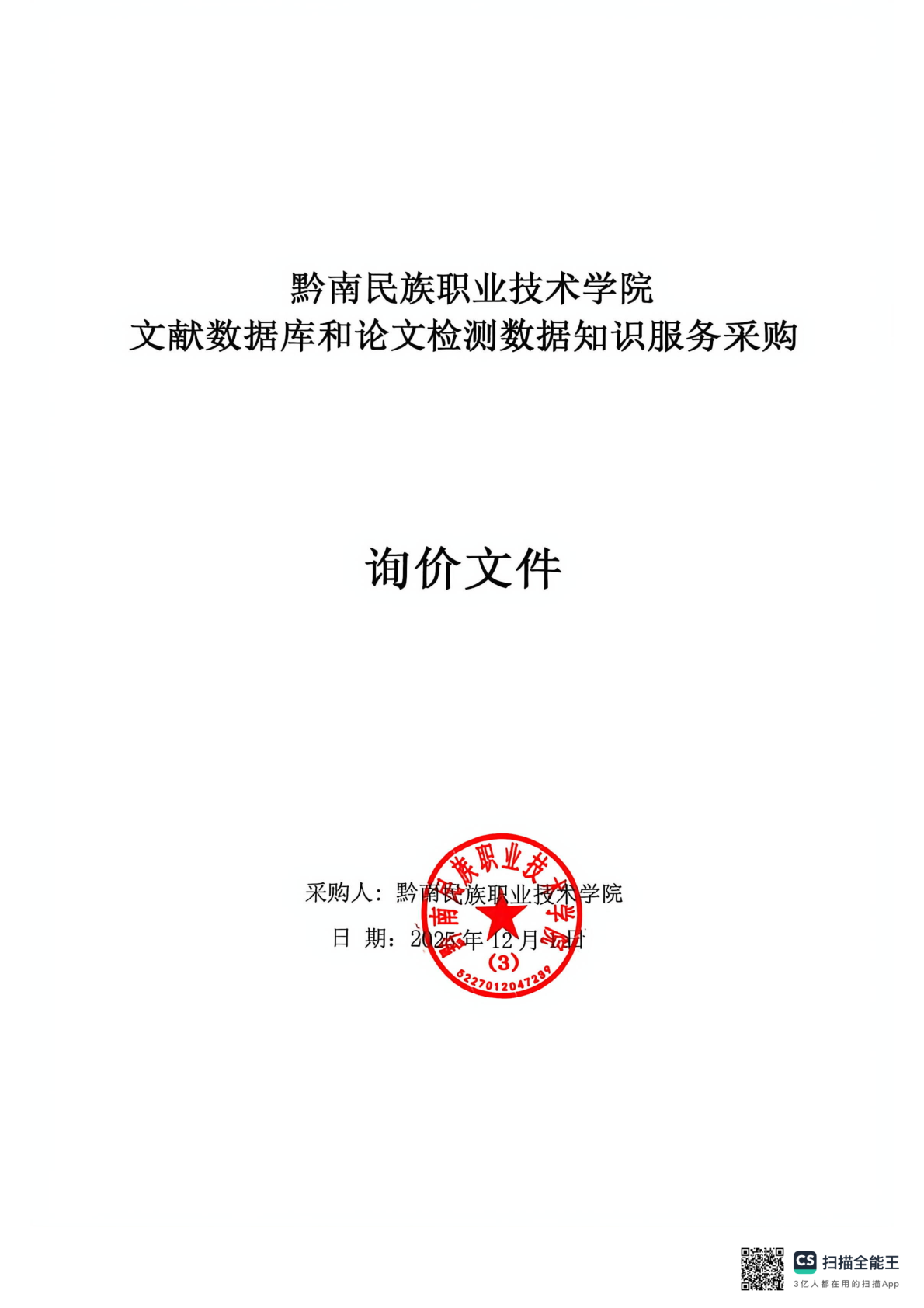 黔南民族职业技术学院文献数据库和论文检测数据知识服务采购