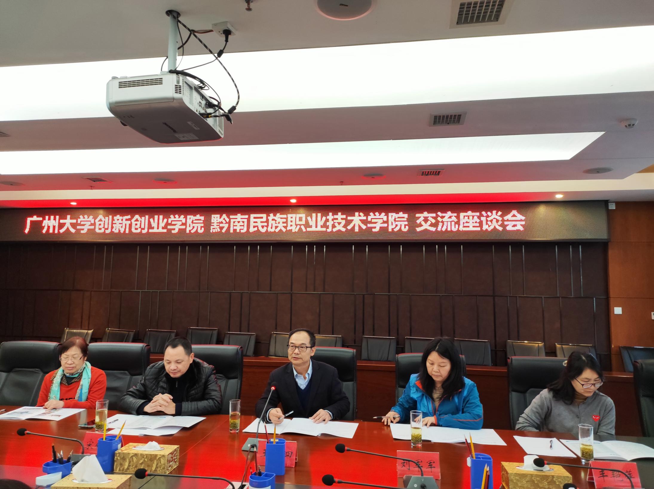 3月18日,广州大学创新创业学院与黔南职院校校合作协议签约仪式在二会议室举行。广州大学创新创业学院院长王满四,黔南职院副院长段班权代表两院进行签约。广州大学创新创业学院副院长刘军军,创业导师丰艳萍,广州大学城管委会创新创业促进中心负责人宋似昊,黔南职院党委副书记钟少兰及相关系部负责人见证,并出席双方座谈会。