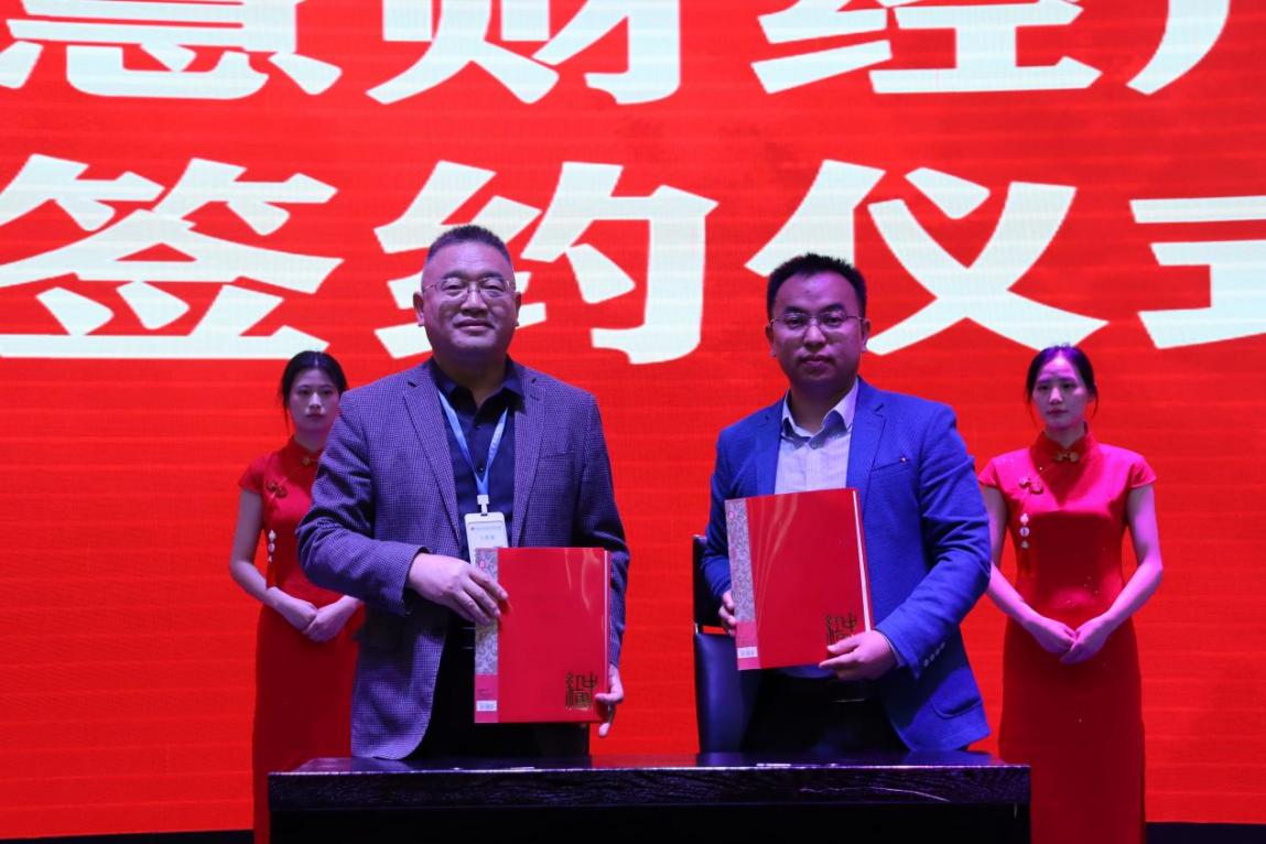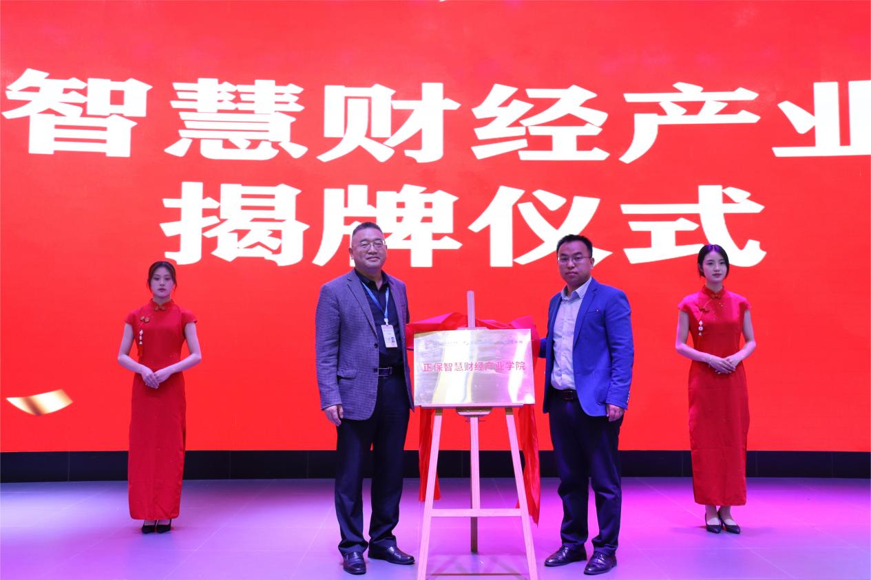 刘荣鹏院长与杨凤坤总经理代表双方签订合作协议,并携手为“正保智慧财经产业学院”揭牌。