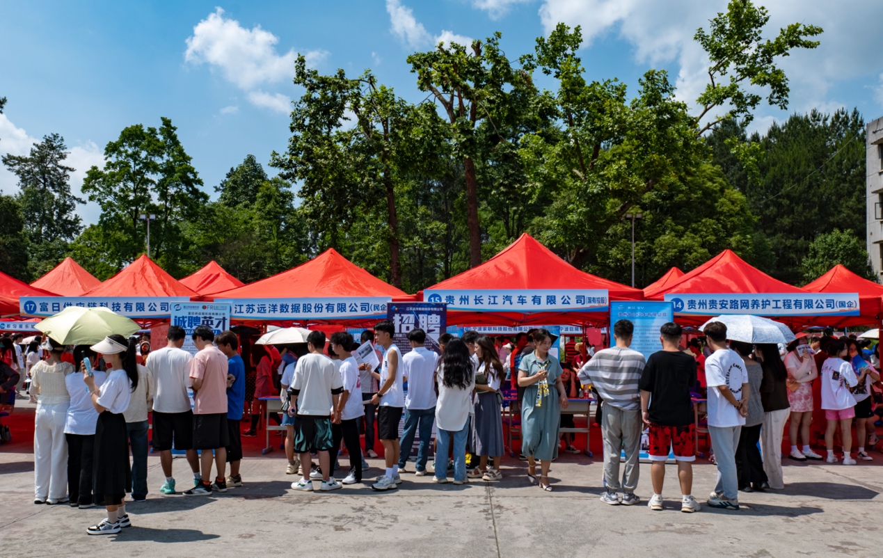5月31日,黔南州2023“百日冲刺促就业”校园招聘会(职院专场)在黔南职院举办。