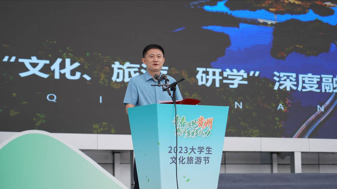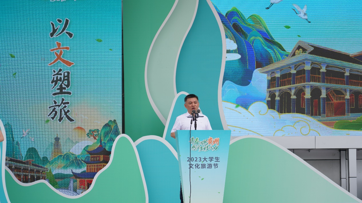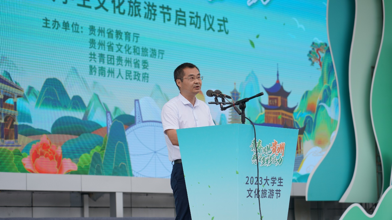 6月27日上午,2023 年“青春遇见贵州·感受多彩魅力”大学生文化旅游节启动仪式在 4A 级研学旅游景区——黔南民族职业技术学院隆重举行,省教育厅、省文化和旅游厅、共青团贵州省委、黔南州政府相关领导,全省各高校、高职院校负责人,全省各市(州)教育局、文旅局、团委负责人,复旦大学、华南理工大学、广州大学、广州铁路职业技术学院、黄冈职业技术学院、广州科技贸易职业学院等9个省46所院校500多名大学生代表,共计7000余人相聚在有着美丽山水桥城之称的都匀,见证了这一激动人心的时刻。