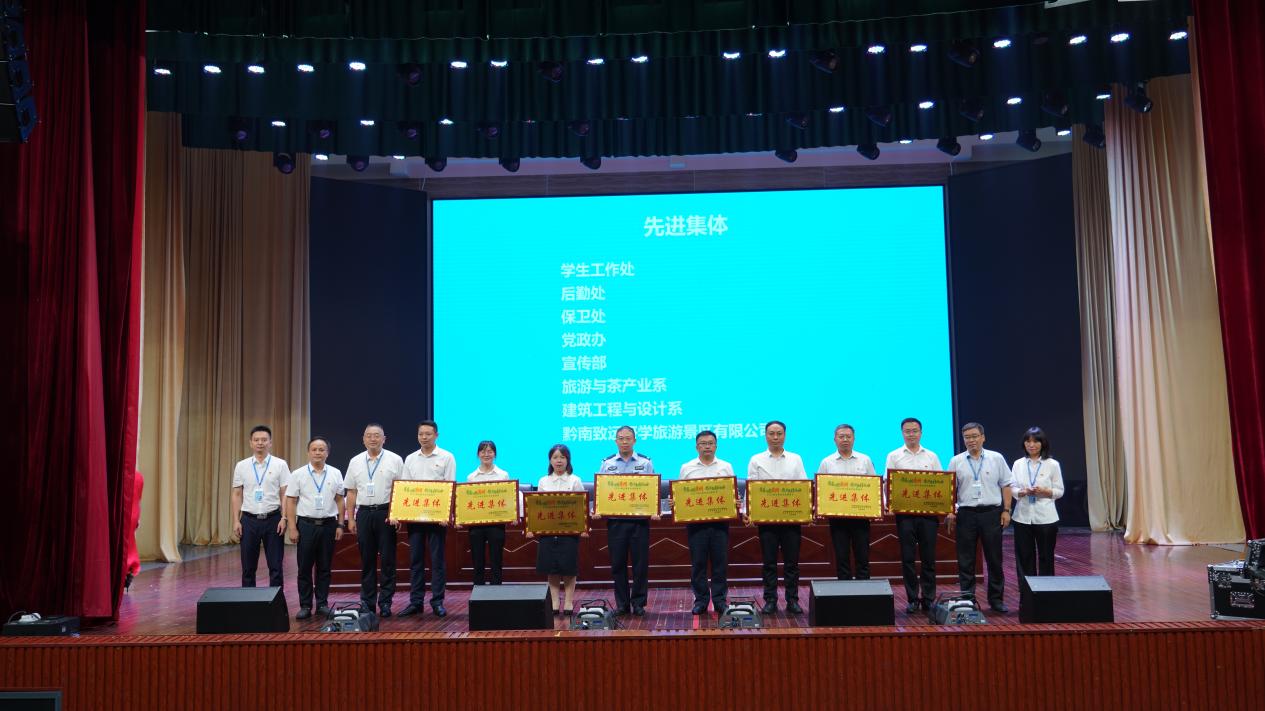 会议宣读了《中国黔南民族职业技术学院委员会关于先进基层党组织、优秀个人表彰决定》《中共黔南民族职业技术学院委员会黔南民族职业技术学院关于表彰“青春遇见贵州·感受多彩魅力”大学生文化旅游节先进集体和先进个人的决定》,颁发了“光荣在党50周年”纪念章。对先进基层党组织、党建带头人、优秀共产党员、优秀党务工作者、先进集体和先进个人进行表彰。