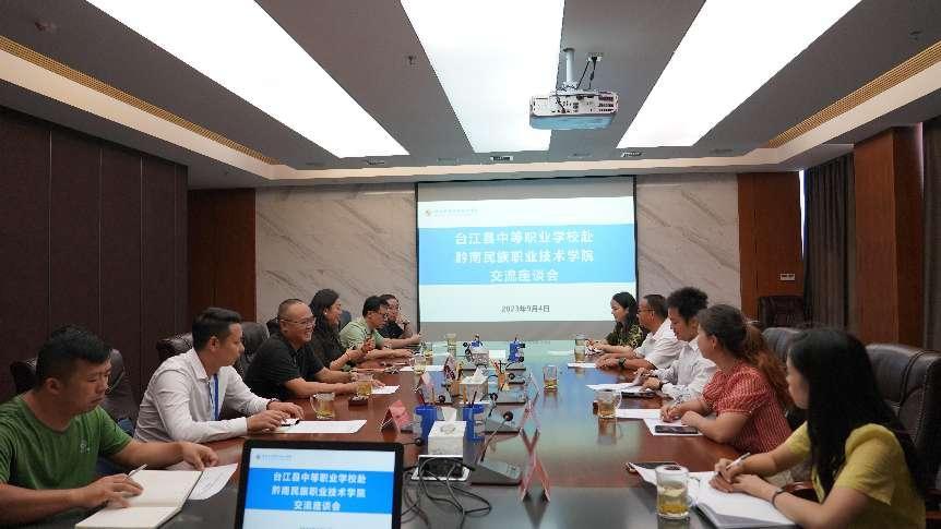 9月4日下午,台江县中等职业学校到我院考察交流校旅结合工作情况。学院副院长王焱,建筑工程与设计系、旅游与茶产业系、基础教育教学部、黔南致远研学旅游景区有限公司有关负责同志陪同考察。