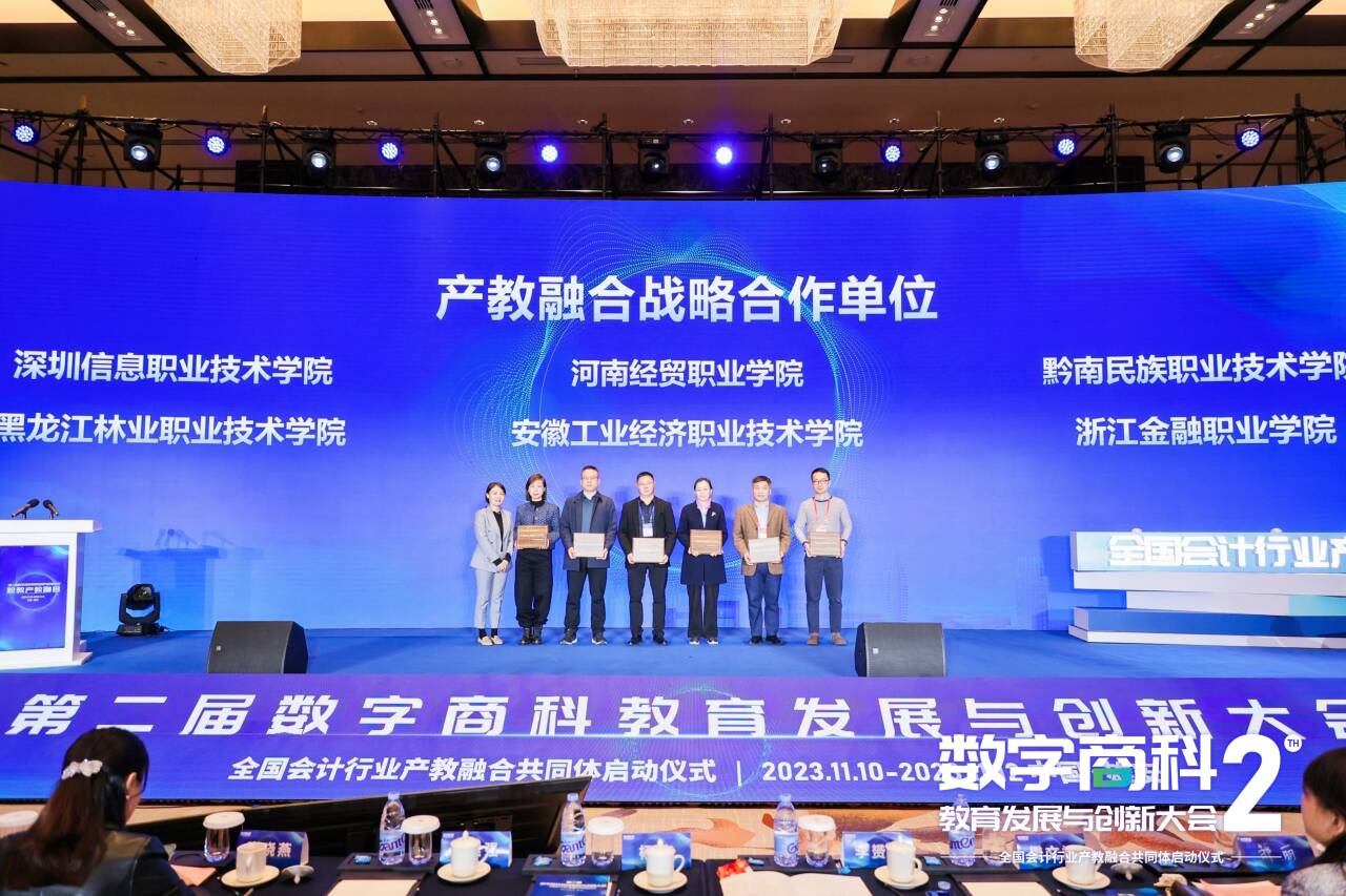 开幕式上,举行了全国会计行业产教融合共同体启动仪式。共同体由北京东大正保科技有限公司、上海财经大学和北京财贸职业学院共同牵头,联想、致同会计师事务所、汇付天下、钉钉联合发起,160所本科院校、361所高职院校、84所中职学校、284家行业组织共同参与,是迄今为止最大的产教融合共同体。
