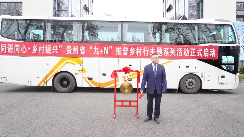 随后,刘荣鹏到推普流动驿站敲响铜锣,标志着活动即刻正式出征。