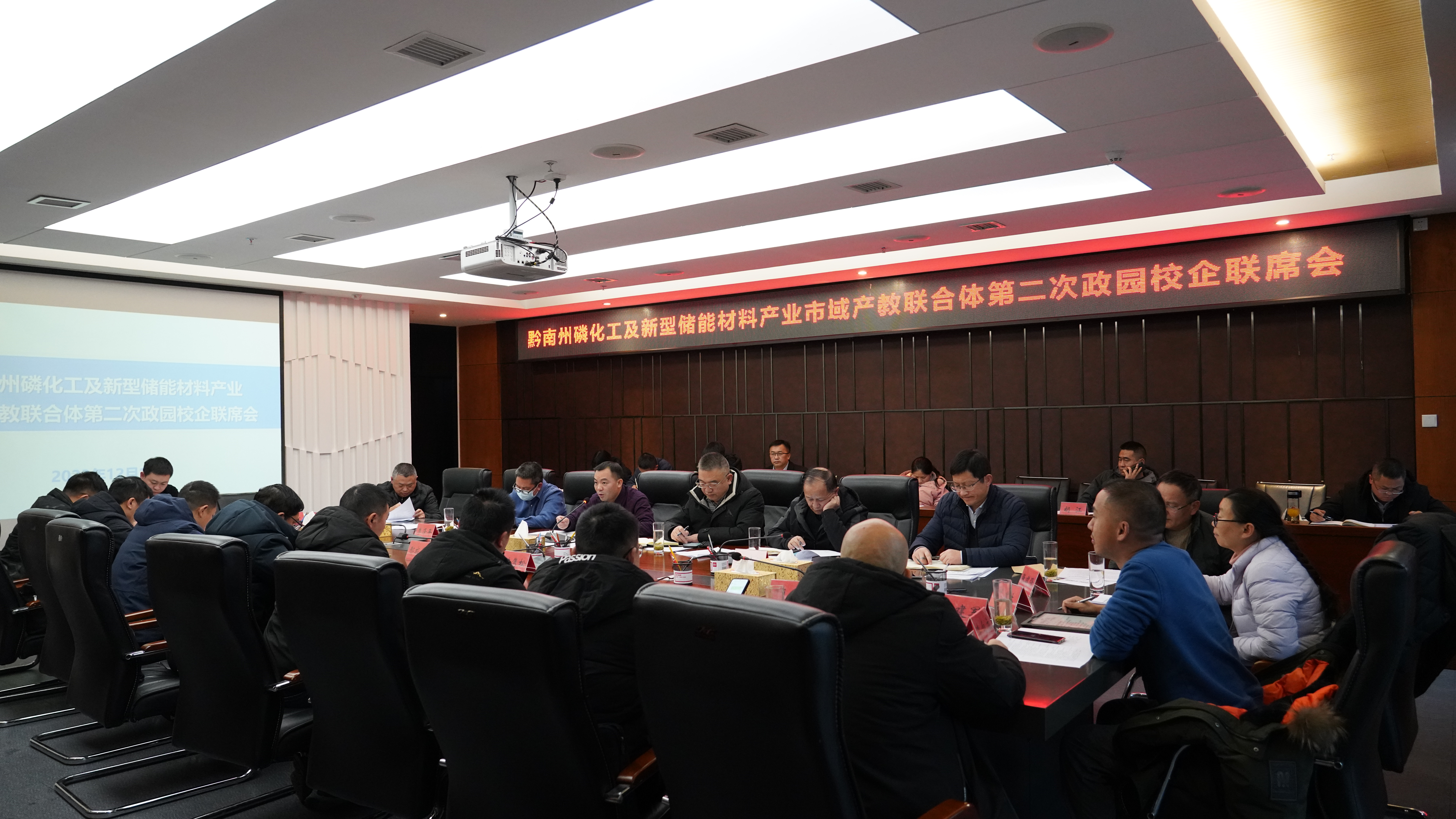 为顺利推进黔南州磷化工及新型储能材料产业市域产教联合体(以下简称联合体)建设工作,12月19日,黔南州磷化工及新型储能材料产业市域产教联合体第二次政园校企联席会议在黔南职院召开。黔南州政府经济发展研究中心主任、联合体理事长张国乾,黔南民族职业技术学院院长刘荣鹏,黔南民族师范学院副院长李泽平,黔南州教育局党委委员、正县级督学陈清涛出席。会议由陈清涛督学主持。
