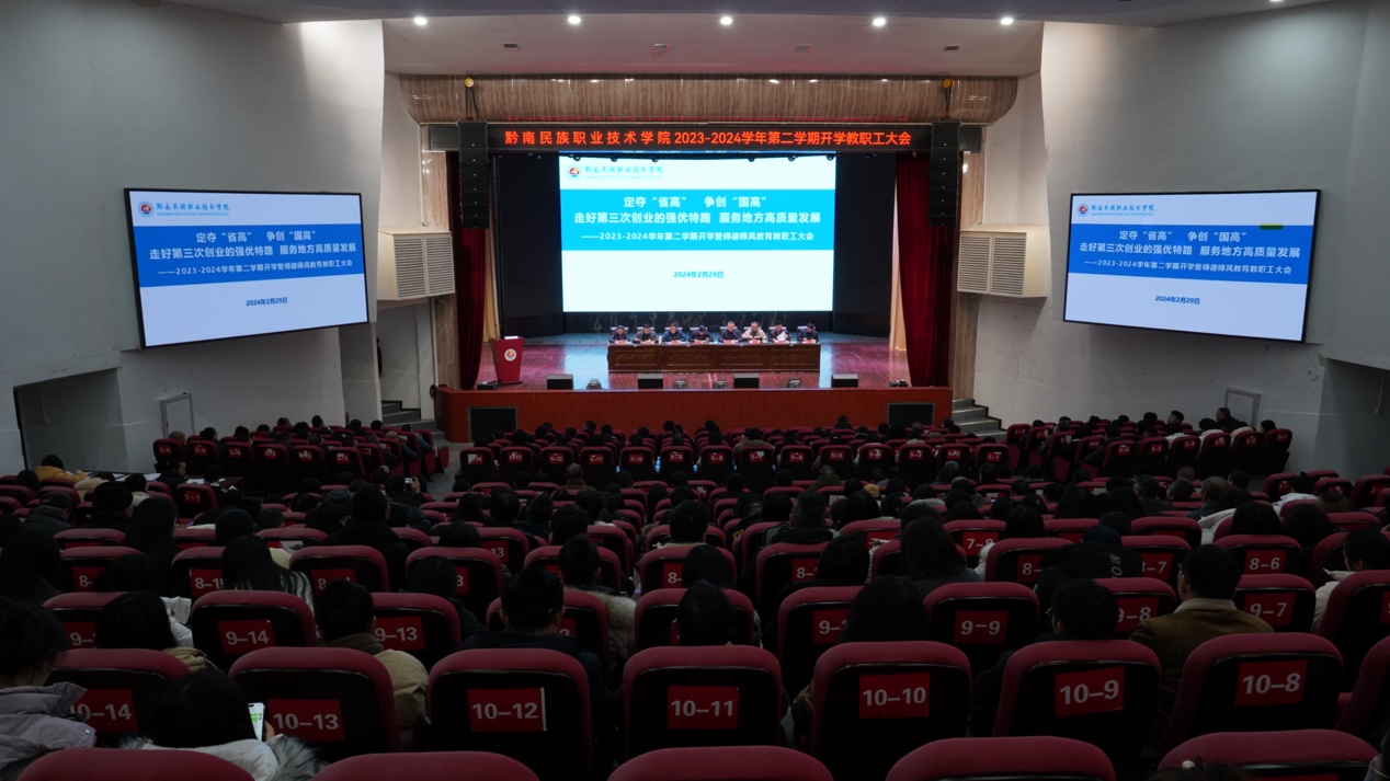 2月29日下午,学院召开2023—2024学年第二学期开学暨师德师风教育教职工大会。学院党委书记罗俊,党委副书记、院长刘荣鹏出席并作要求,党政班子成员及全体教职工参加。会议由刘荣鹏院长主持。