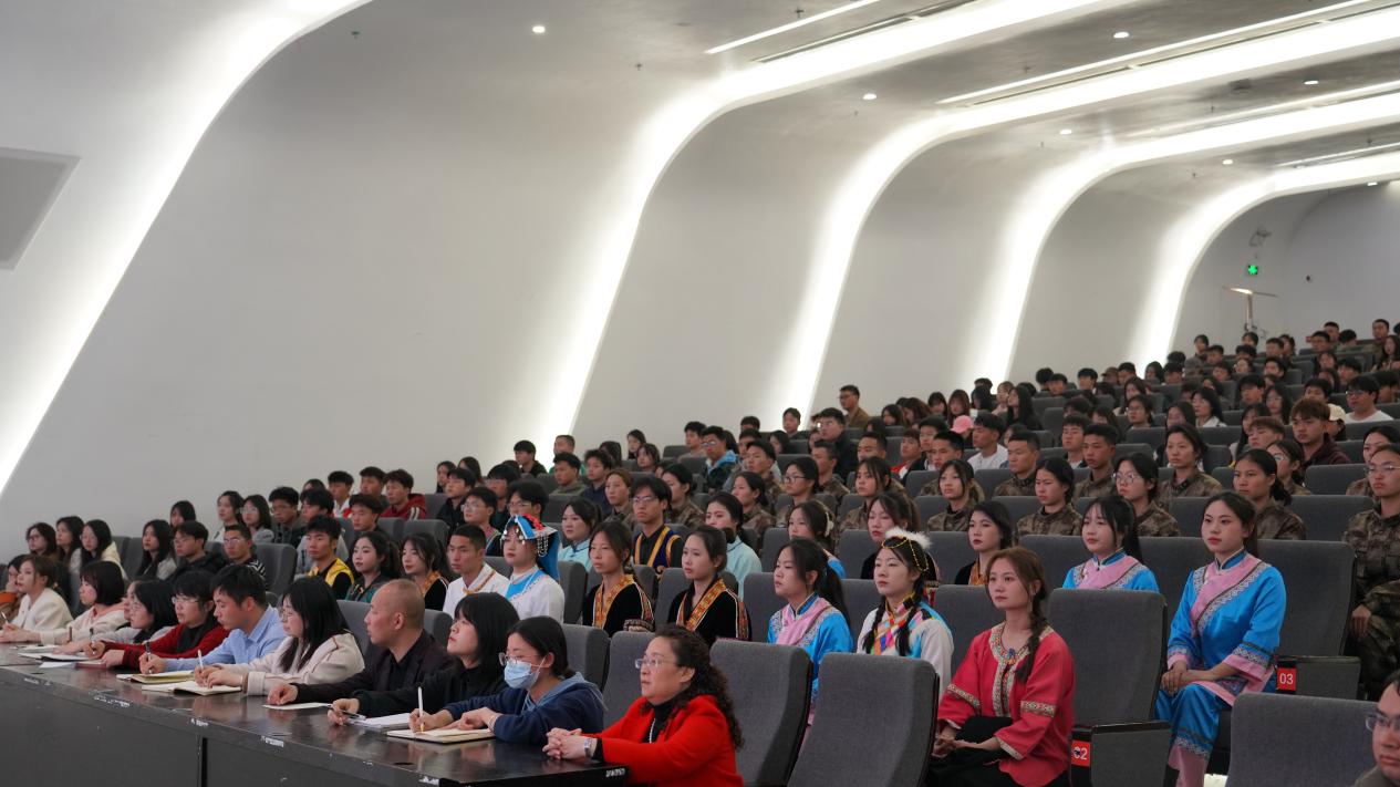 课上,罗俊通过图片、文字和视频等方式,强调青年是祖国的未来,民族的希望,高等院校是传承中华民族优秀传统文化、铸牢中华民族共同体意识的重要阵地。他结合自己的工作经历及学院的发展史,用鲜活的案例讲述了“一部中国史,就是一部各民族交融汇聚成多元一体中华民族的历史,就是各民族共同缔造、发展、巩固统一的伟大祖国的历史,大家切身感受到从历史深处走来的中华民族共同体有血有肉、可感可知,明白中华民族从哪里来、到哪里去”,更加深入了解和认识中华民族,深刻理解和领悟习近平总书记指明的中华文明的突出特性。