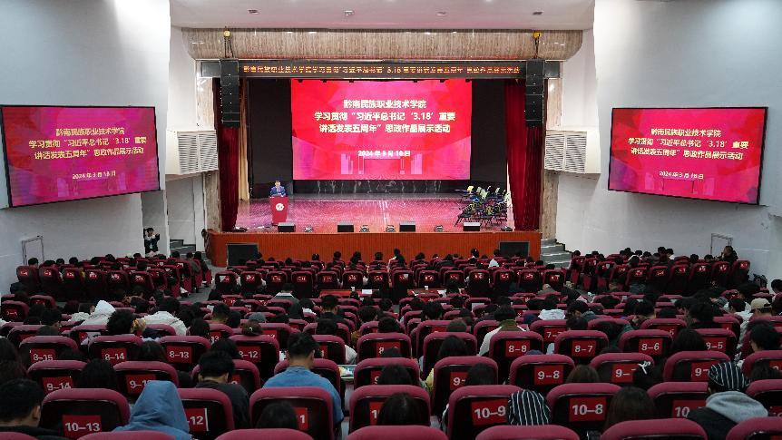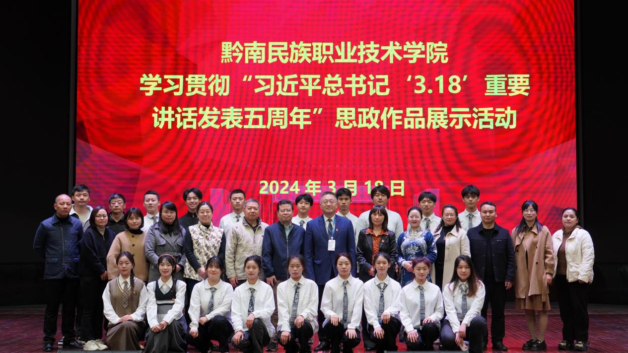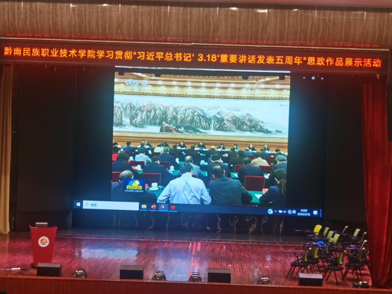 3月18日上午,学习贯彻“习近平总书记‘3·18’重要讲话发表五周年”思政作品展示活动在南区讲学厅举行。各党总支书记、各系主要负责人、全体思政课教师、学生代表参加活动。钟少兰副书记主持活动。