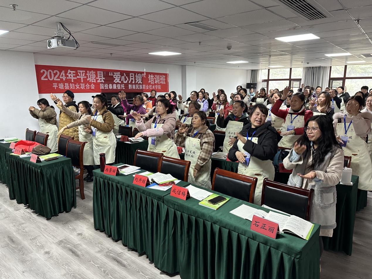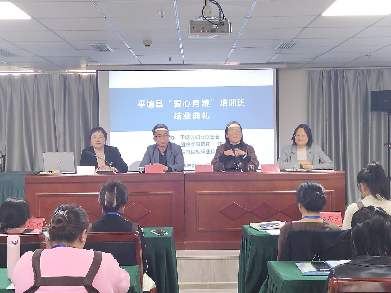 2024年3月9日-23日,由平塘县妇联主办,我院承办的2024年平塘县“爱心月嫂”培训班顺利结业。来自平塘县各乡(镇、街道)的63名妇女同胞经过考评获得《母婴护理证》职业技能等级证书。学院充分发挥社会服务作用,让妇女就业有“术” 致富有“路”。