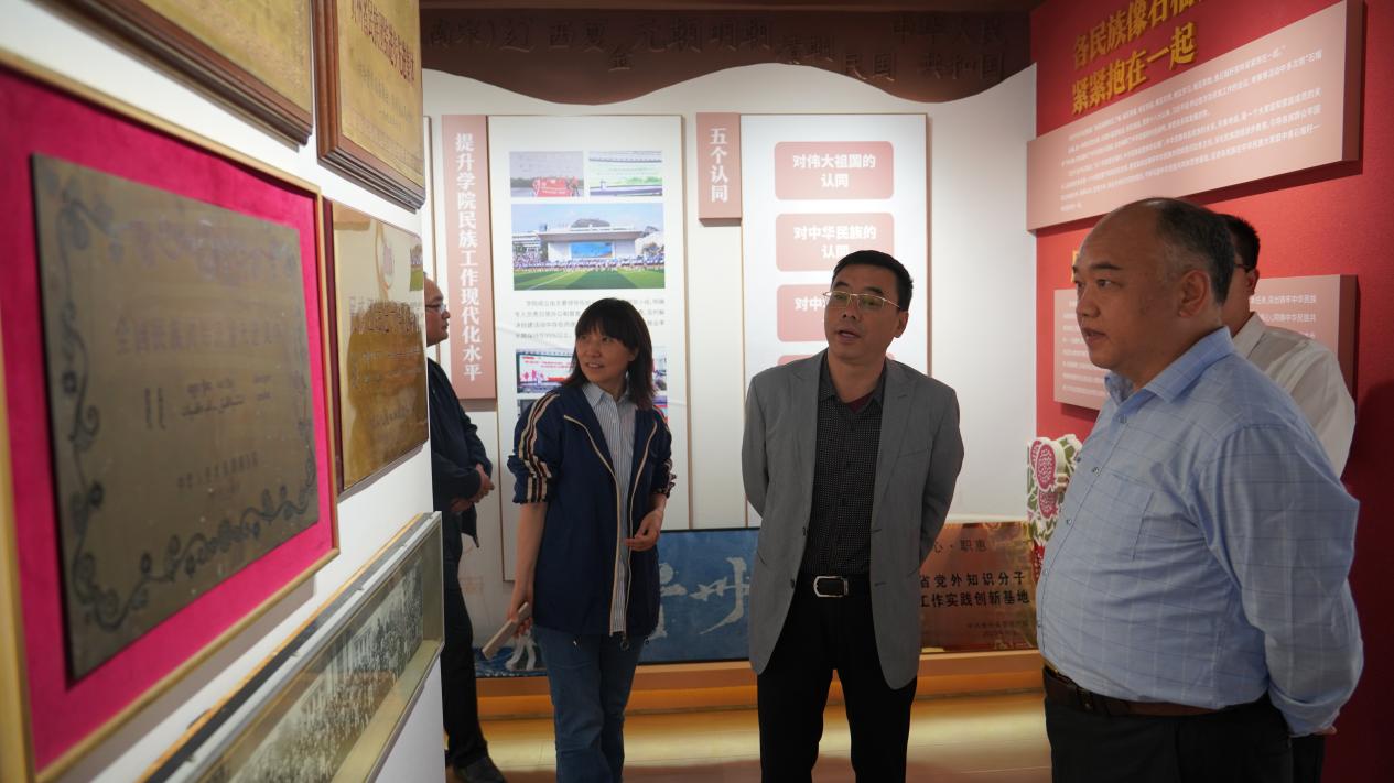 调研组一行参观了校史馆、铸牢中华民族共同体意识教育基地,并观看了学院宣传片。