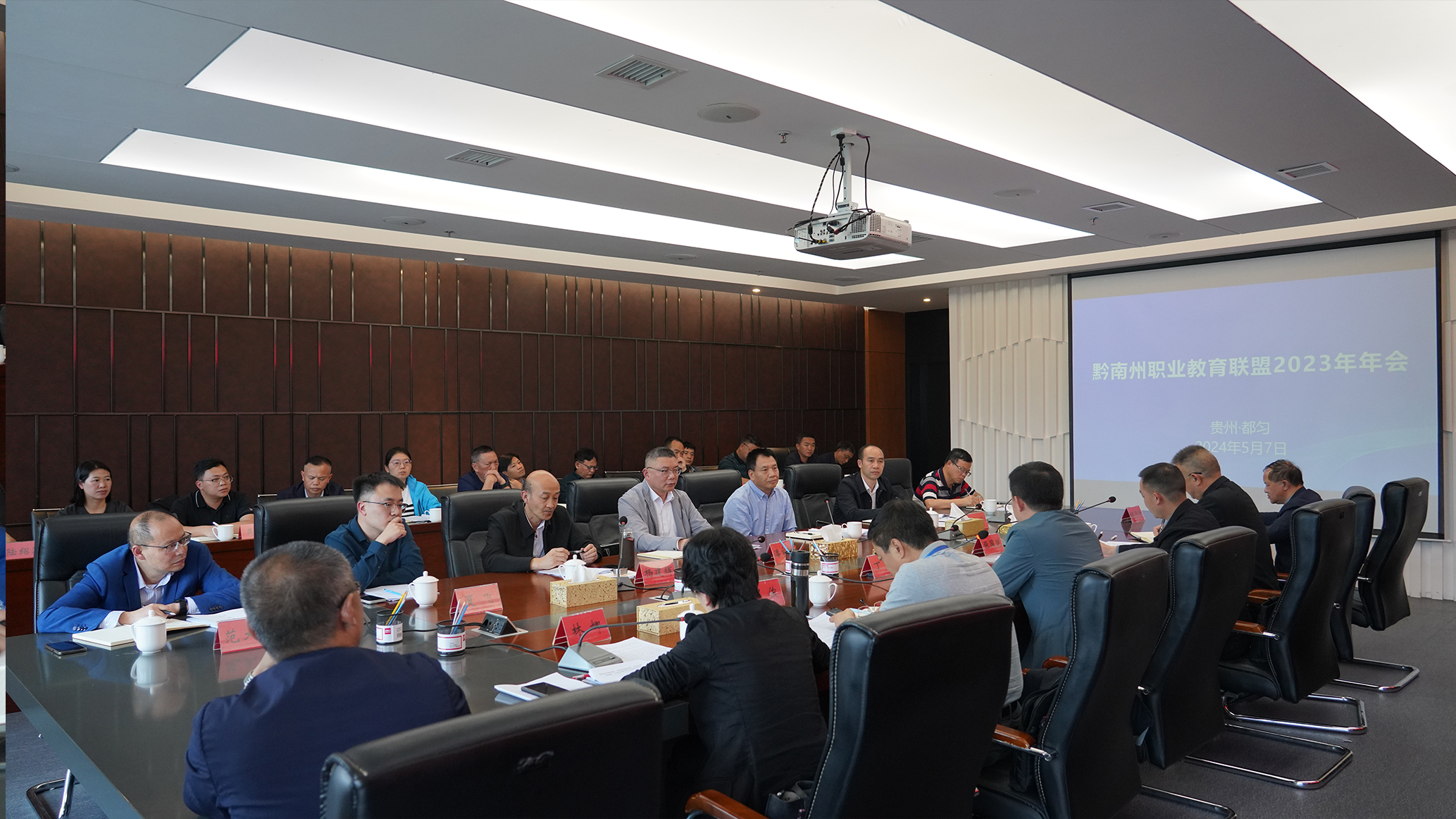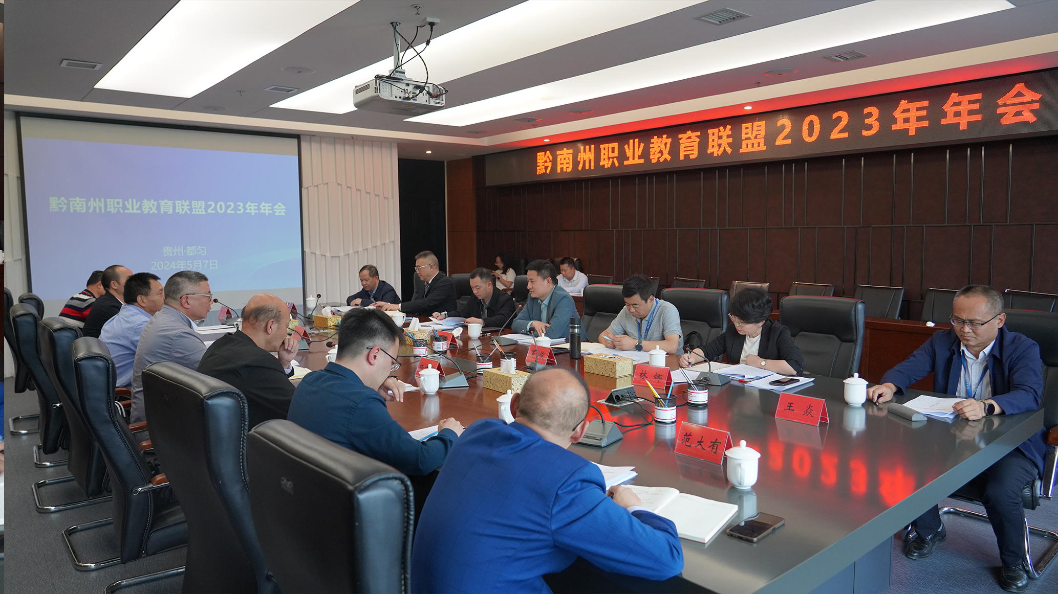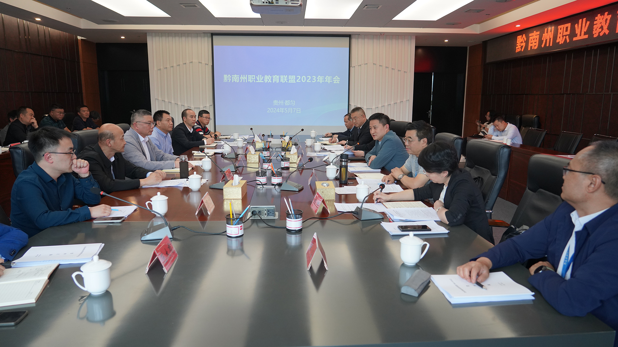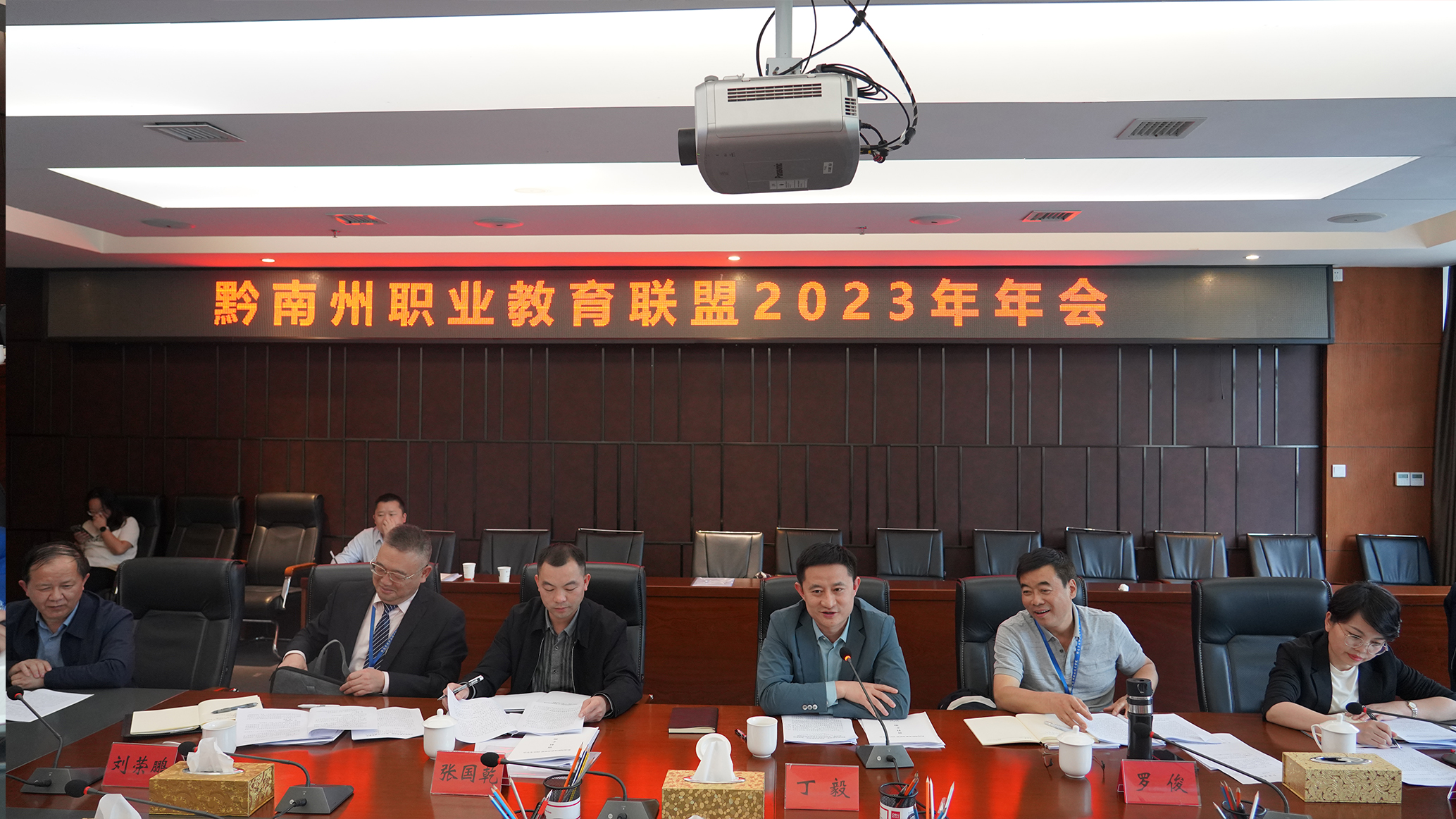 5月7日下午,黔南州职业教育联盟2023年年会在黔南职院召开。州委常委、州政府常务副州长丁毅出席并讲话;州政府经济发展研究中心主任张国乾,黔南职院党委书记罗俊,黔南职院院长、黔南州职业教育联盟理事长刘荣鹏出席;州内各高职高专院校、各职教集团负责同志,各中等职业学校负责同志,联盟内的部分行业协会、企业代表参加。会议由州教育局局长林娜主持。
