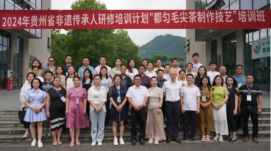 7月12日,由贵州省文化和旅游厅指导,黔南民族职业技术学院主办,黔南州文化广电和旅游局协办的2024年贵州省非物质文化遗产传承人群研习培训计划《都匀毛尖茶制作技艺》培训班在学院见贤厅正式开班。