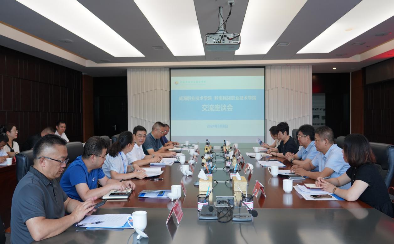 8月8日,威海职业学院一行赴我院开展合作交流。学院党委书记罗俊,党委副书记、院长刘荣鹏,副院长何琳陪同交流并座谈。双方教务、有关教学系部等负责人、专业带头人参加会议。