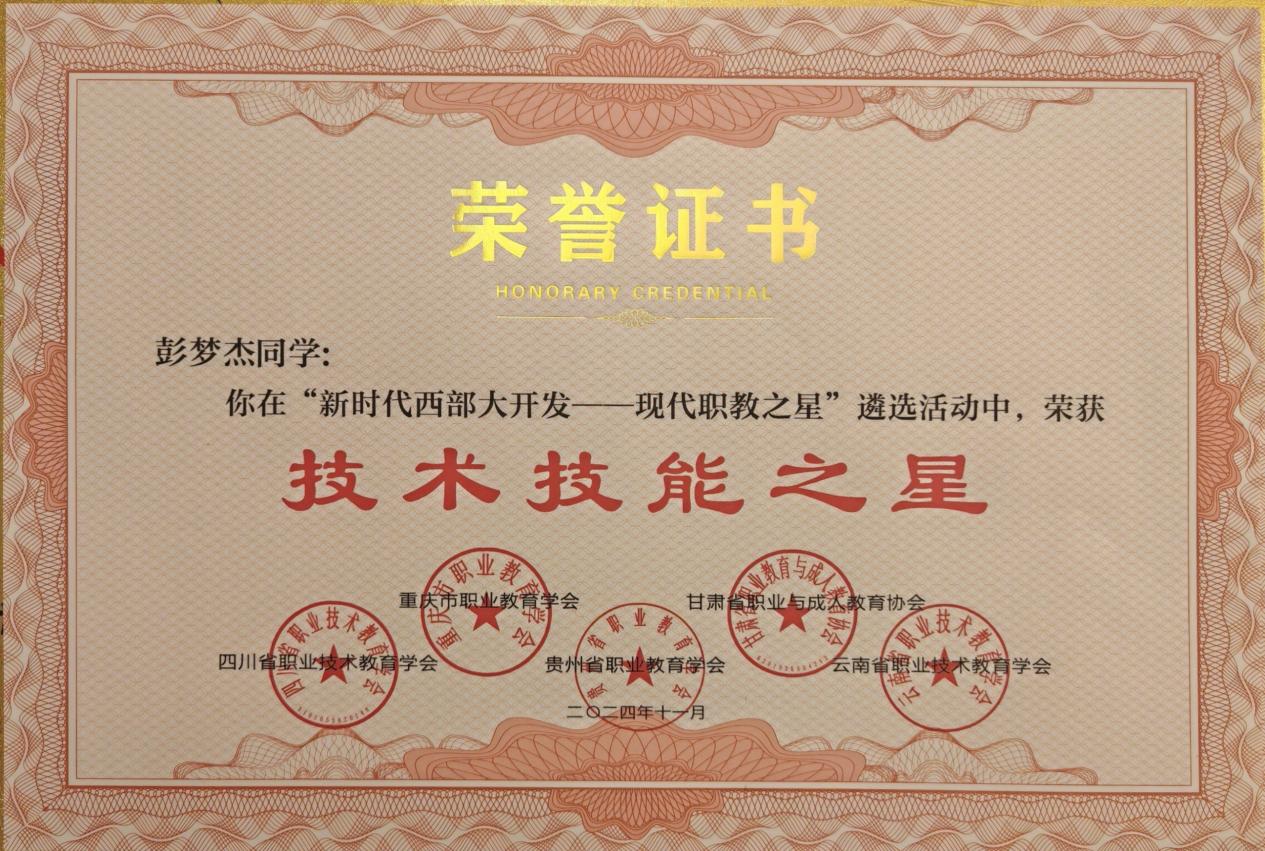 彭梦杰同学获“技术技能之星”