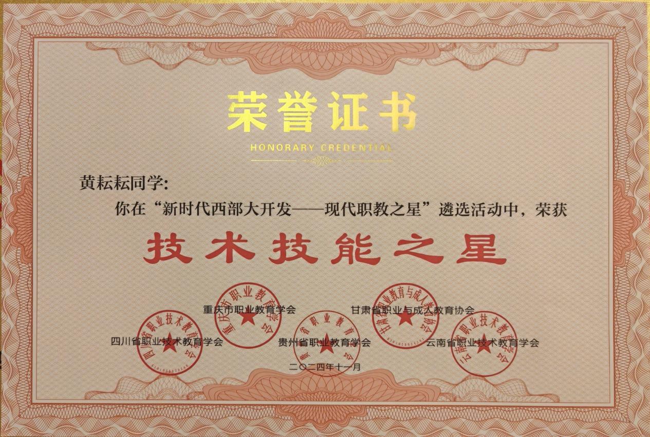 黄耘耘同学获“技术技能之星”