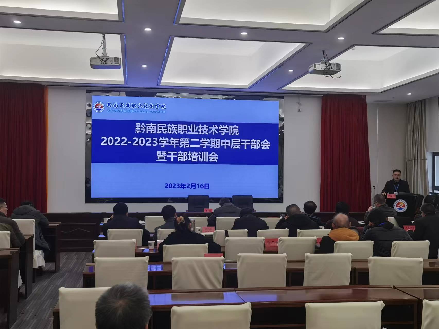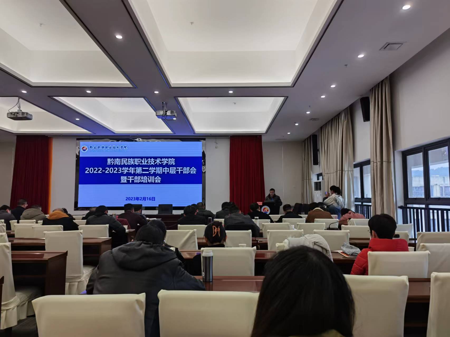 为进一步总结上年工作、提升干部队伍的综合素质,提高中层干部的工作能力和管理水平,2月16日,黔南职院在知行楼六楼职教联盟教师培训室召开中层干部会暨干部培训会。学院党委书记罗俊、院长刘荣鹏分别发表讲话。学院党委班子成员、全体中层干部参会学习。会议由党委书记罗俊主持。