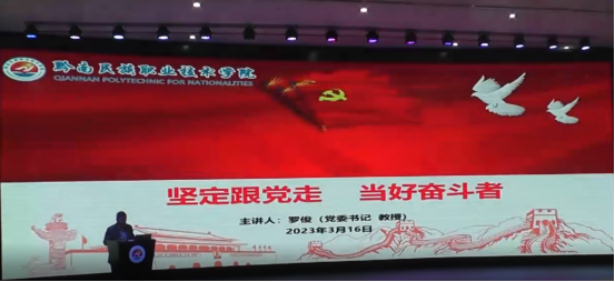 为深入学习宣传贯彻习近平新时代中国特色社会主义思想和党的二十大精神,着力培养担当民族复兴大任的时代新人,引导学生坚定理想信念,增强“四个意识”,坚定“四个自信”。3月16日,党委书记罗俊在学术报告厅,以《坚定跟党走 当好奋斗者》为主题,为全体思政教师、建筑工程系师生300余人进行一场别开生面的思政课讲座,并与同学们围绕以中国式现代化推进中华民族伟大复兴道路上,青年如何作为、如何成长进行深入交流。
