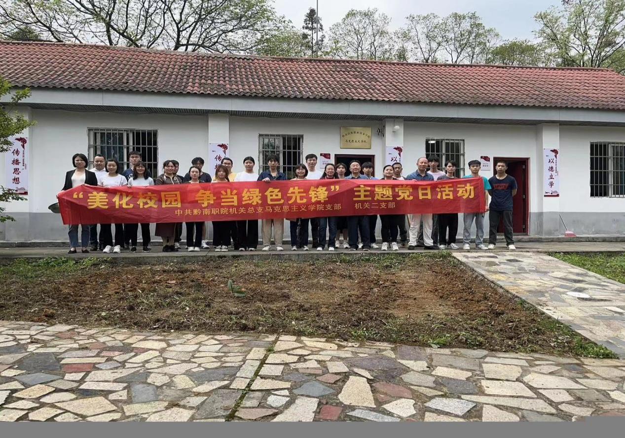 为增强党员的服务意识,发挥党员同志的模范带头作用,营造美丽、整洁、和谐的育人环境,深入推进“33753”育人模式,4月18日,院机关二支部与马克思主义学院支部利用中午休息时间,在校园内开展“美化校园,争当绿色先锋”主题党日活动。