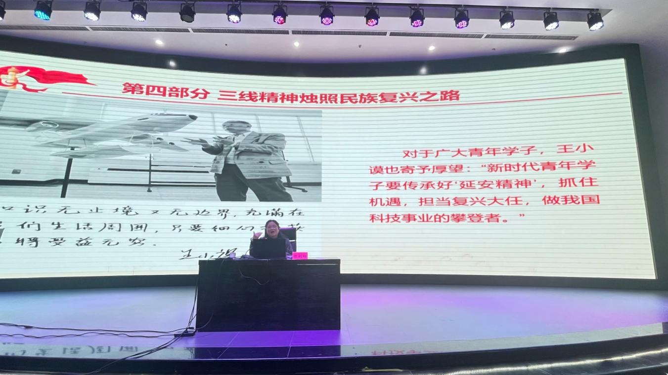 陈剑虹以“走出都匀大山深处的中国预警机之父——王小谟”为题,向大家讲述了中国工程院院士王小谟的光辉历程。王小谟先生从三线燃情岁月、为国砺剑啸长空,到三线精神烛照民族复兴之路,为中国雷达和预警机装备的发展屹立起一座座不朽的丰碑。陈剑虹老师的宣讲慷慨激昂,语言生动,带领大家感受王小谟的爱国情怀、学习王小谟的辉煌事迹,激发大家奋斗拼搏的昂扬斗志、坚定大家为国奉献的理想信念。