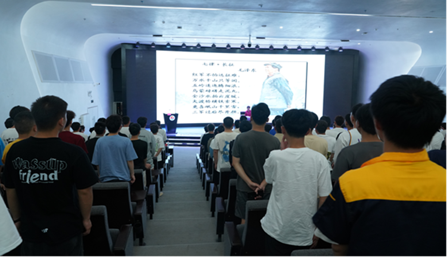 贾天成老师以“传承红色基因 争做时代新人”为主题,从老红军肖德昌的出生背景,到他一步步走上红军道路、踏上长征征程,再到革命抗战中的种种光辉事迹,以老同志的亲身经历、真挚情感和真实故事,带领我们重温了老红军肖德昌为革命奋斗一生的动人故事。讲座快结束时,贾天成老师带领全体同学共同诵读毛泽东同志的《七律•长征》。