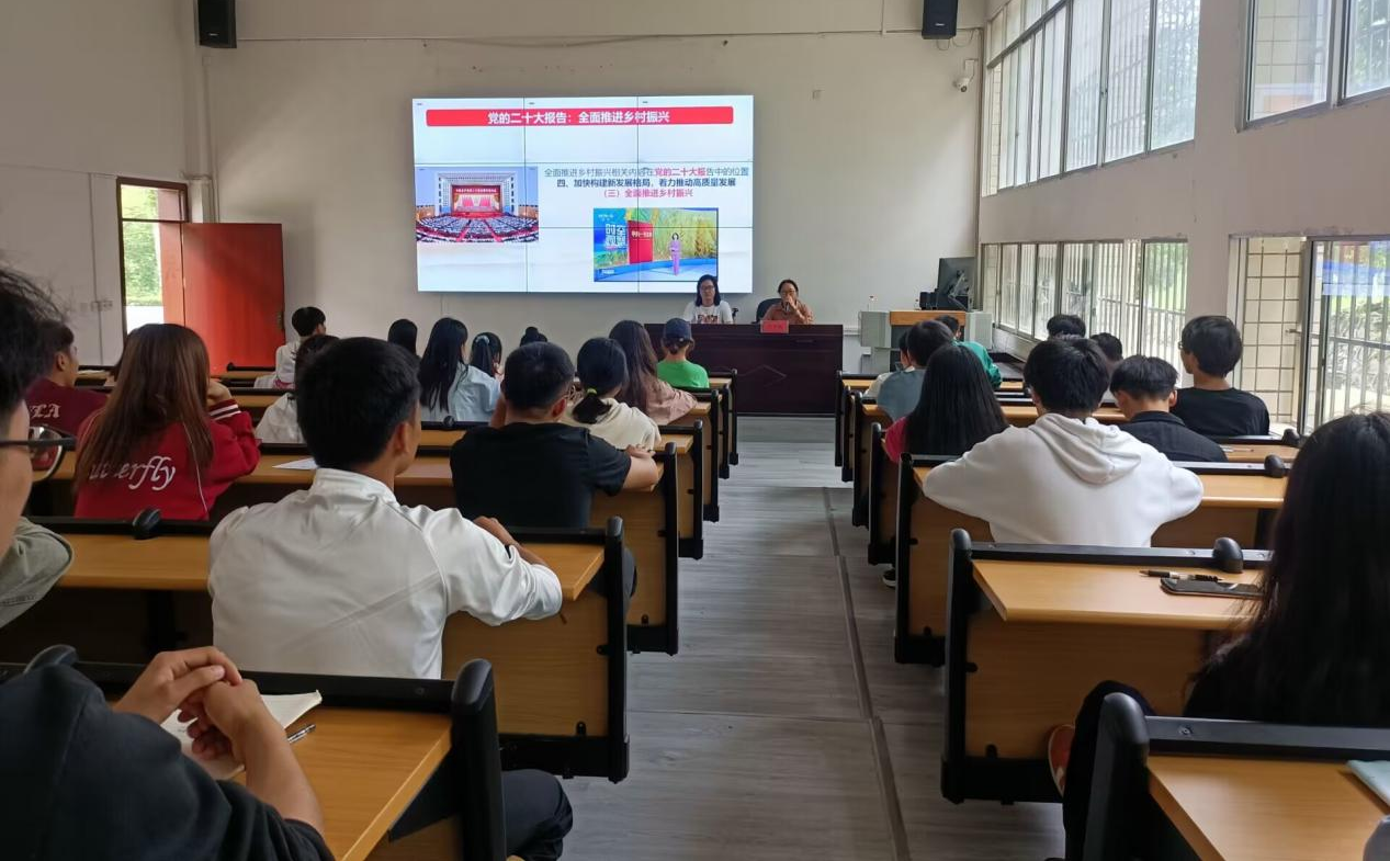 李然首先带领入党积极分子学习党的二十大报告中关于全面推进乡村振兴的重要内容。刘芳梅结合自身经历,以扶贫干部的故事、当地村民的故事,讲述了自己担任中和镇水龙村驻村第一书记的经历。刘芳梅勉励青年学生,要摆脱浮躁冒进、懒惰畏惧等不良风气,要爱党、爱国、爱家乡,要老老实实做人、踏踏实实做事,心怀感恩,多做好事、实事,扎实苦练技能,务必要做一个对国家对人民有所贡献的有为青年,为实现中华民族的伟大复兴贡献青春和力量。