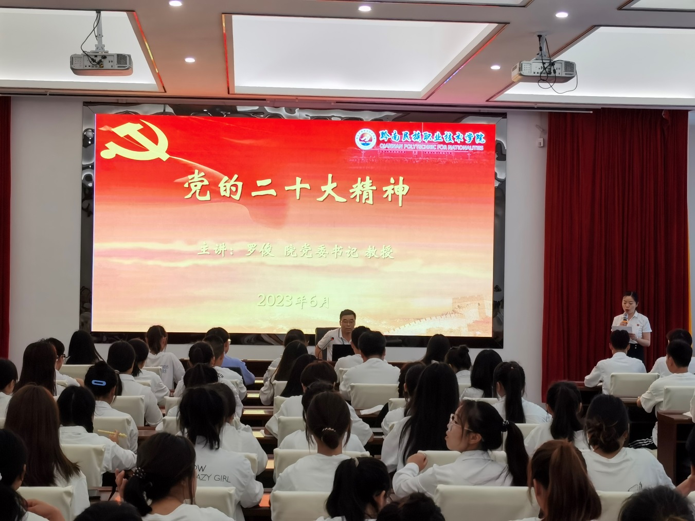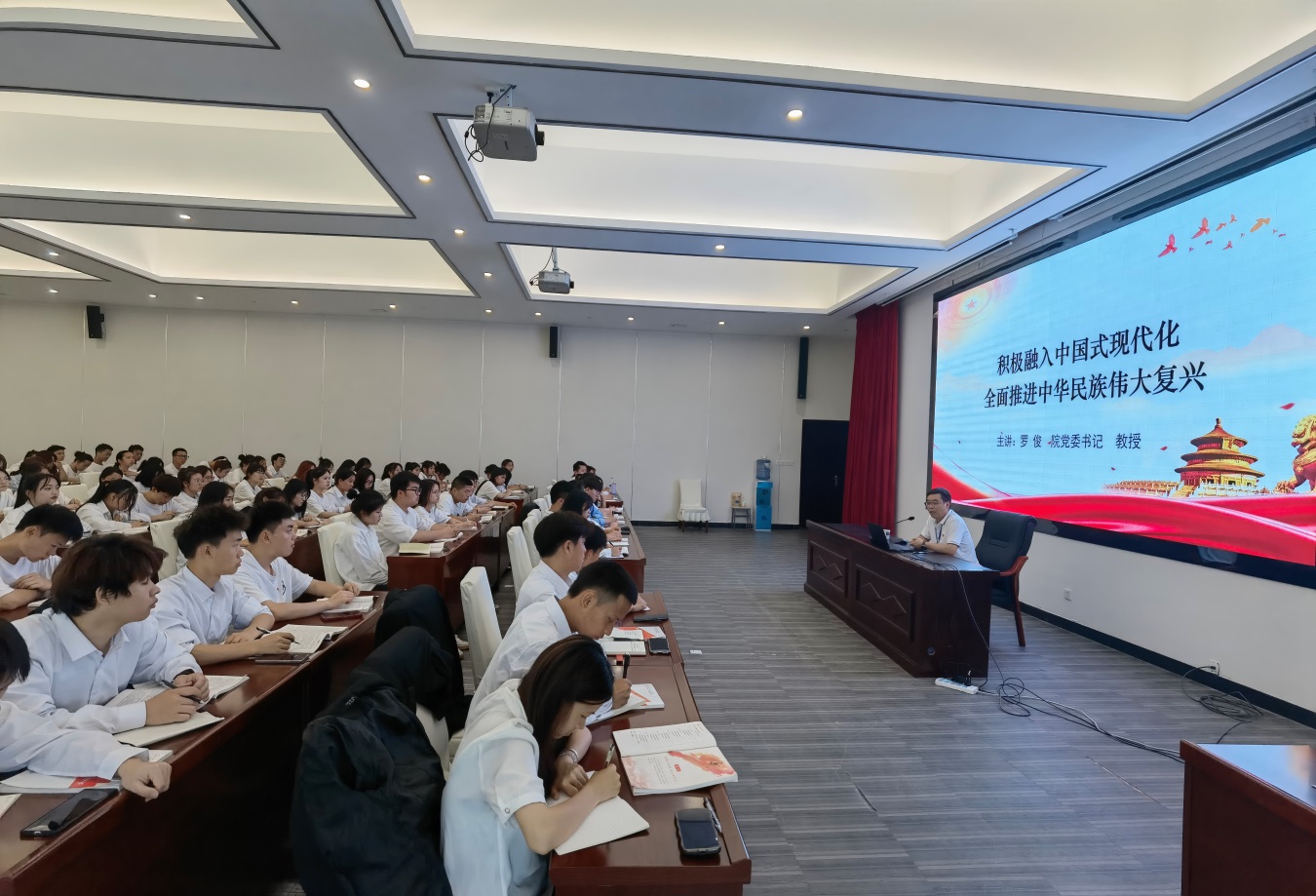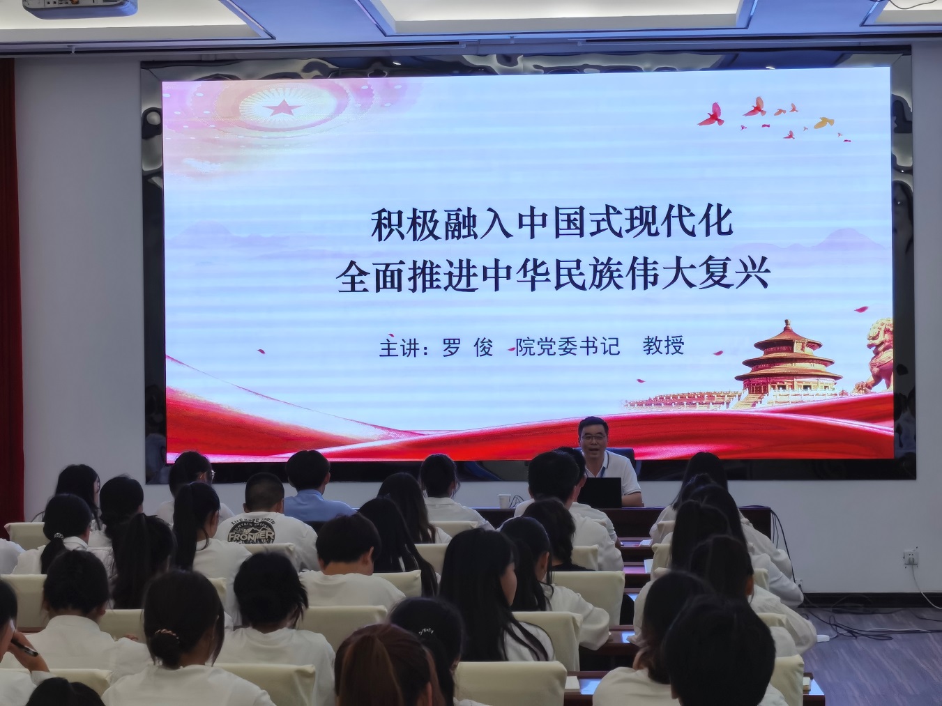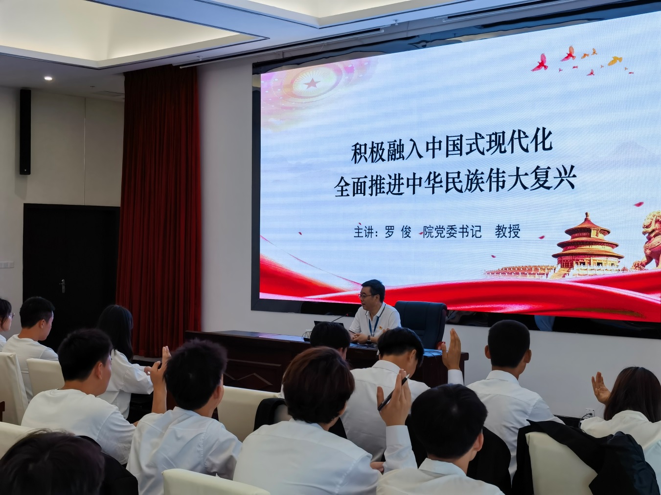 为深入学习贯彻党的二十大精神,加强青年学生、团学干部、入党积极分子的理想信念教育,引领广大青年学生深入理解党的二十大报告的现实意义和深刻内涵。6月2日下午,在知行楼道德讲堂,学院党委书记罗俊以“积极融入中国式现代化 全面推进中华民族伟大复兴”为题为青年党员、团学干部、入党积极分子等,宣讲党的二十大精神。