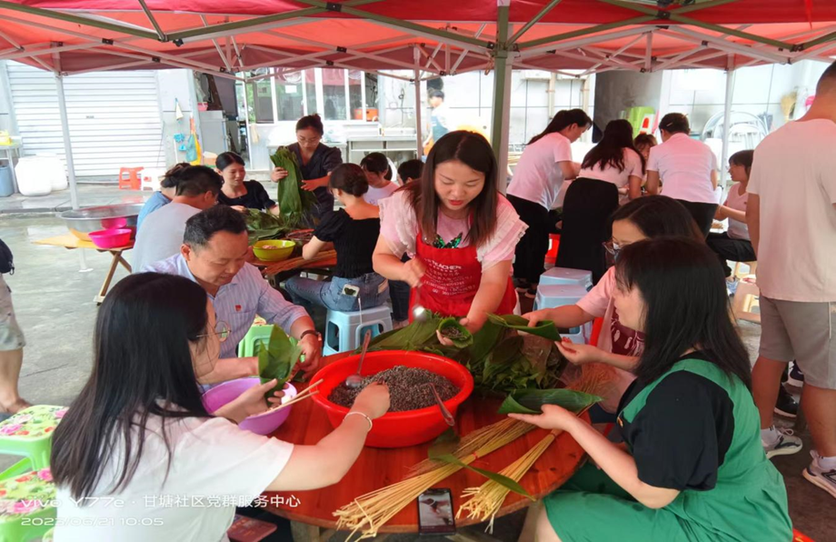 为进一步提高机关党组织和党员深入群众、服务社区的能力,引导党员干部积极参与社区管理服务,强化党员服务意识,充分发挥党员的先锋模范作用。6月21日上午,院机关二支部全体党员干部深入甘塘社区开展服务活动,参与社区端午节主题活动。