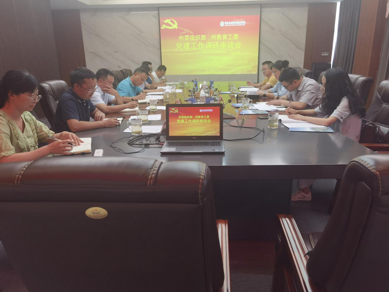 为扎实提升高校党建工作质量,着力破解领域党建难题,7月17日下午州委组织部、州委教育工委调研组一行到黔南民族职业技术学院进行党建工作调研。院党委副书记韦永革、组织部部长犹琴、以及相关人员参与调研。